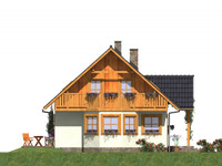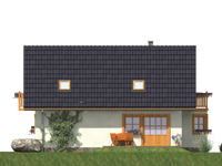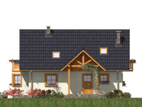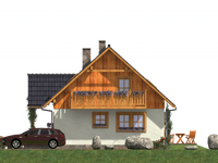 Graficzne opracowanie rzutów poglądowych widocznych na karcie projektu zostało wykonane przez Extradom.pl. Prezentowane przez Extradom.pl wizualizacje wykonane zostały przez autora projektu i należy poczytywać je jedynie za przykład i propozycję wykończenia, wizję architektoniczną autora projektu. Ostateczne wykończenie budynku może nastąpić na wiele sposobów. Szczegółowe rozwiązania zastosowane w oferowanej dokumentacji - w tym również ilość, lokalizacje i wygląd okien, drzwi, kominów - mogą w niewielkim stopniu różnić się od prezentowanej wizualizacji budynku.