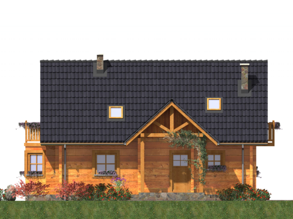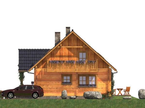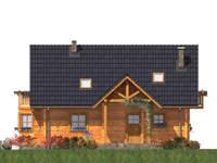 Fundamenty: żelbetowe, wylewane. Ściany zewnętrzne: Z bali drewnianych gr. 16 plus ocieplenie 12 cm. Projekt dopuszcza ściany grubości 12, 20, 24, 30 cm ocieplone od wewnątrz wełną mineralną oraz gr. 62 cm bez ocieplenia. Schody: drewniane. Strop: belkowy, drewniany, otwarty. Dach: dwuspadowy. Pokrycie dachu: dachówka betonowa. Nachylenie dachu: 42°. Sposób ogrzewania: Piec dwufunkcyjny na gaz ziemny lub płynny. Istnieje możliwość zastosowania pieca na paliwo stałe. Takie rozwiązanie inwestor może zastosować dokonując zmiany na etapie adaptacji lub w trakcie użytkowania budynku.