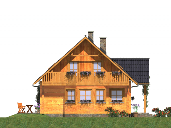 Graficzne opracowanie rzutów poglądowych widocznych na karcie projektu zostało wykonane przez Extradom.pl. Prezentowane przez Extradom.pl wizualizacje wykonane zostały przez autora projektu i należy poczytywać je jedynie za przykład i propozycję wykończenia, wizję architektoniczną autora projektu. Ostateczne wykończenie budynku może nastąpić na wiele sposobów. Szczegółowe rozwiązania zastosowane w oferowanej dokumentacji - w tym również ilość, lokalizacje i wygląd okien, drzwi, kominów - mogą w niewielkim stopniu różnić się od prezentowanej wizualizacji budynku.