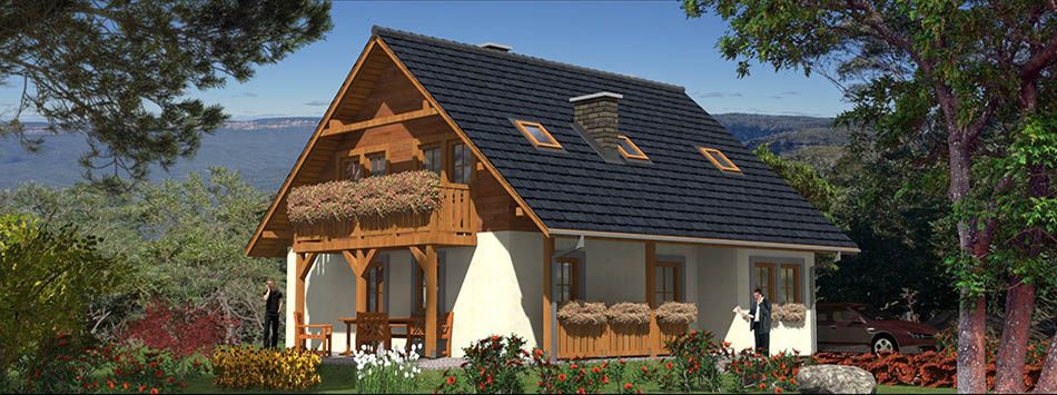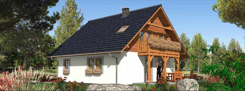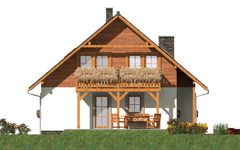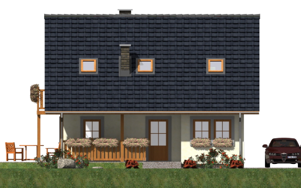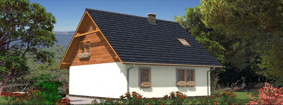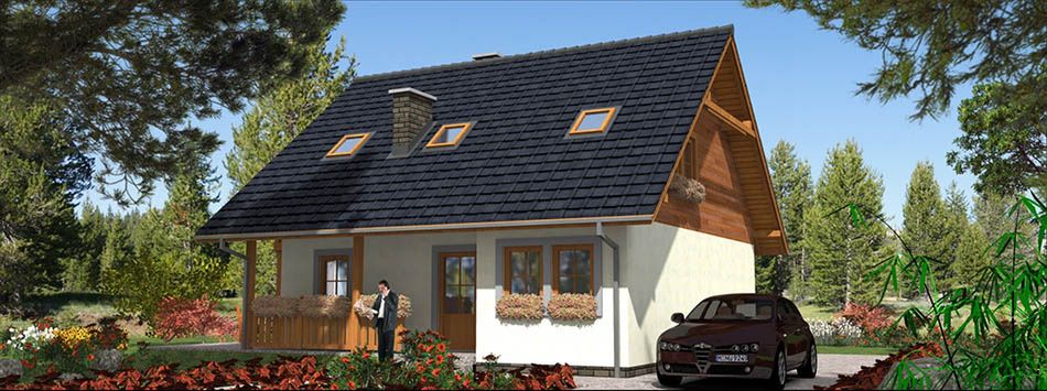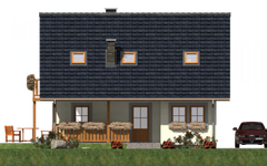 Graficzne opracowanie rzutów poglądowych widocznych na karcie projektu zostało wykonane przez Extradom.pl. Prezentowane przez Extradom.pl wizualizacje wykonane zostały przez autora projektu i należy poczytywać je jedynie za przykład i propozycję wykończenia, wizję architektoniczną autora projektu. Ostateczne wykończenie budynku może nastąpić na wiele sposobów. Szczegółowe rozwiązania zastosowane w oferowanej dokumentacji - w tym również ilość, lokalizacje i wygląd okien, drzwi, kominów - mogą w niewielkim stopniu różnić się od prezentowanej wizualizacji budynku.