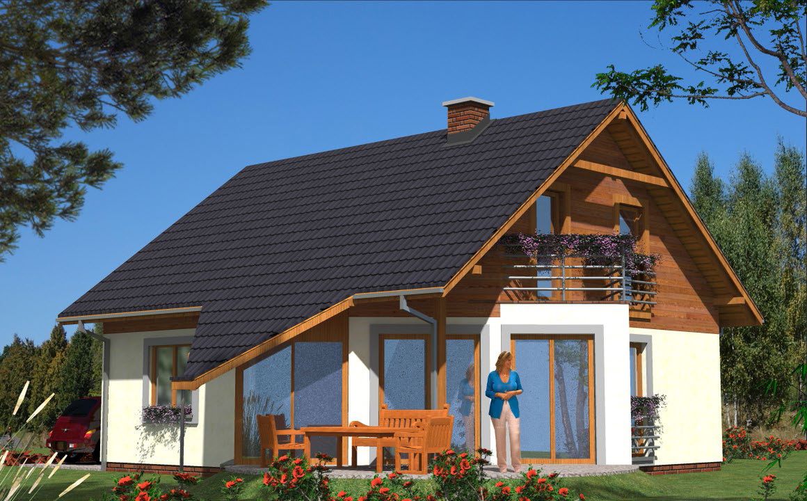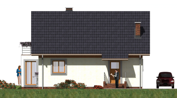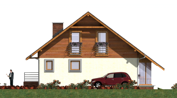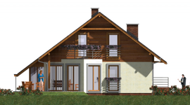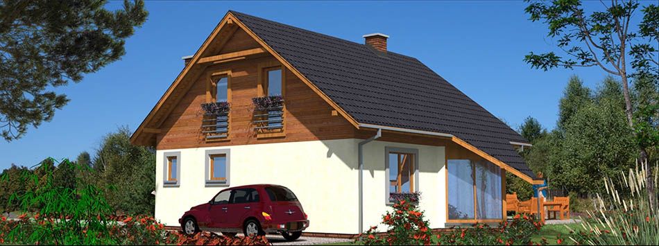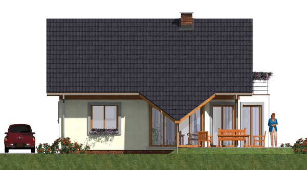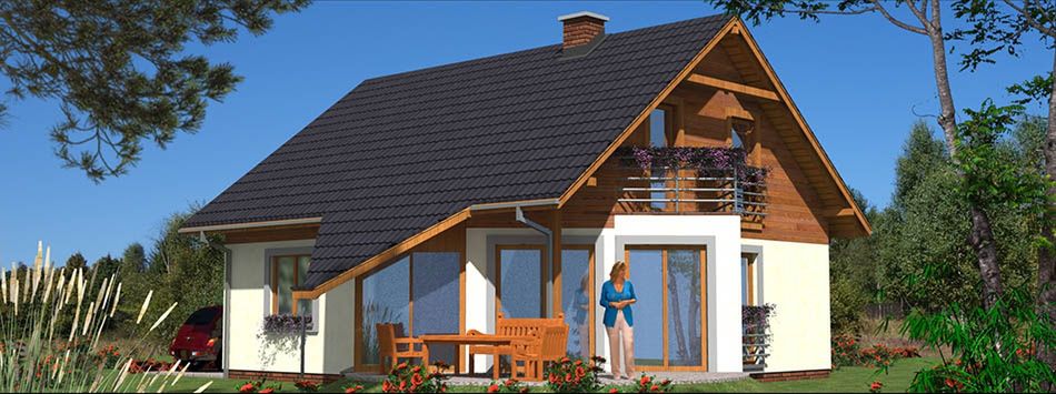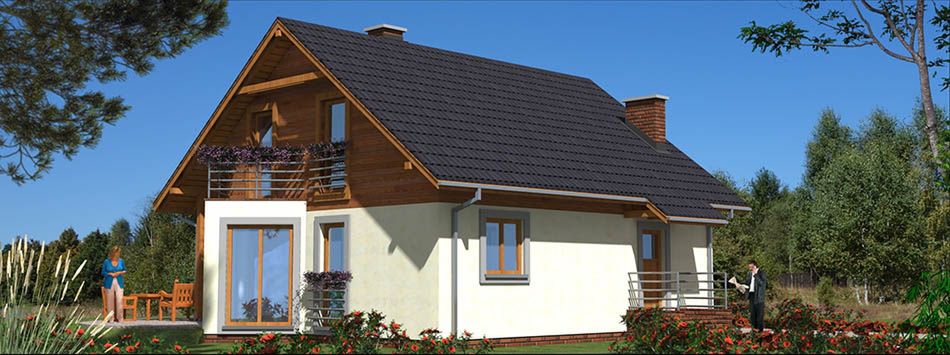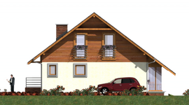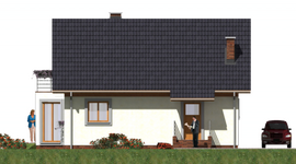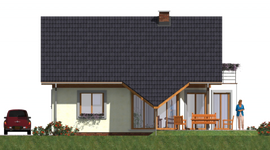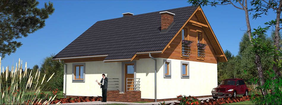 Graficzne opracowanie rzutów poglądowych widocznych na karcie projektu zostało wykonane przez Extradom.pl. Prezentowane przez Extradom.pl wizualizacje wykonane zostały przez autora projektu i należy poczytywać je jedynie za przykład i propozycję wykończenia, wizję architektoniczną autora projektu. Ostateczne wykończenie budynku może nastąpić na wiele sposobów. Szczegółowe rozwiązania zastosowane w oferowanej dokumentacji - w tym również ilość, lokalizacje i wygląd okien, drzwi, kominów - mogą w niewielkim stopniu różnić się od prezentowanej wizualizacji budynku.