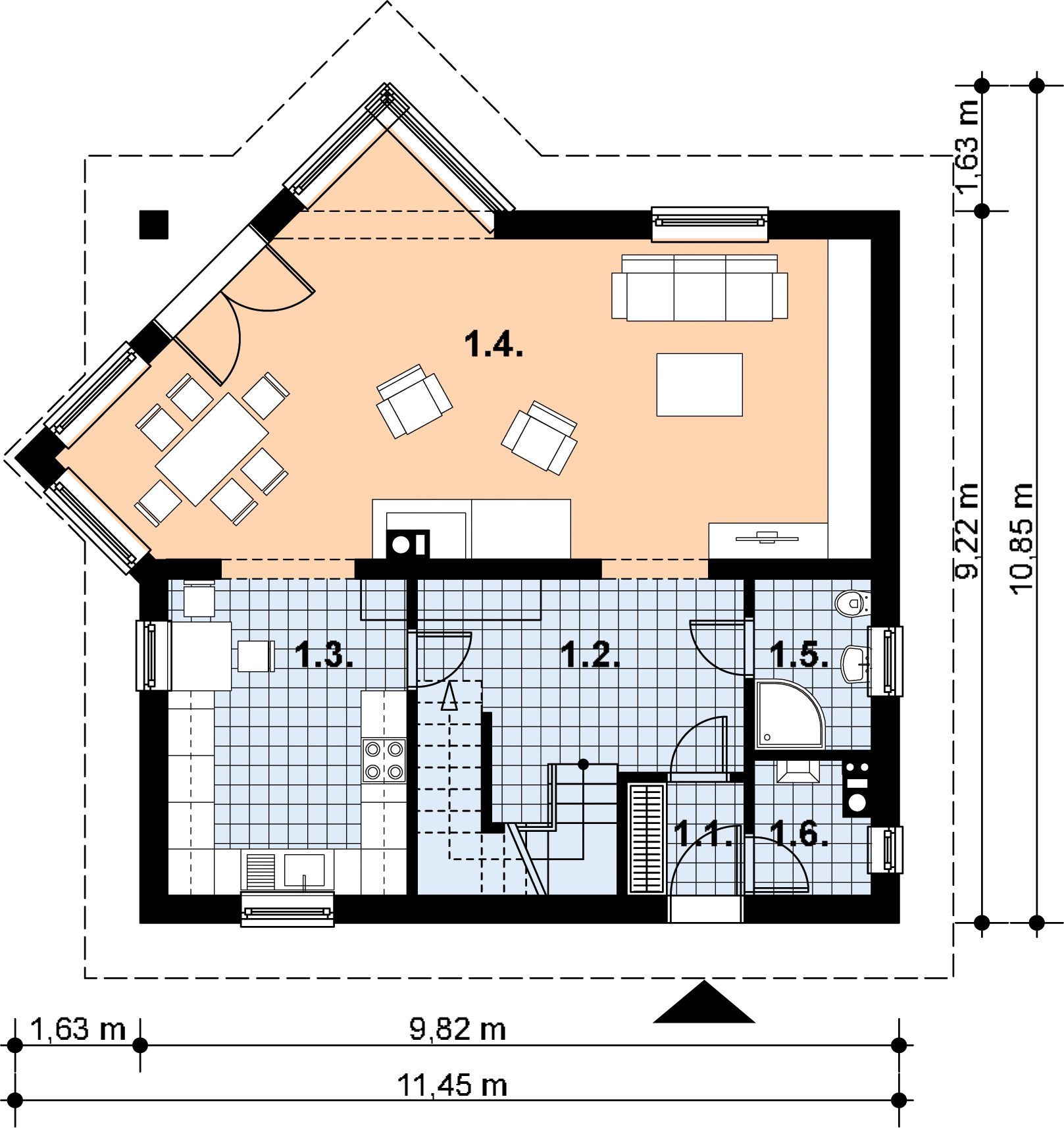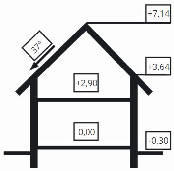 Fundamenty: żelbetowe, wylewane Ściany zewnetrzne: murowane, jednowarstwowe, beton komórkowy lub ceramika Strop: żelbetowy, prefabrykowany Schody: żelbetowe lub drewniane. Pokrycie dachu: dachówka betonowa. Nachylenie dachu: 37°. Sposób ogrzewania: piec dwufunkcyjny na gaz ziemny lub płynny. Alternatywnie piec na paliwo stałe.