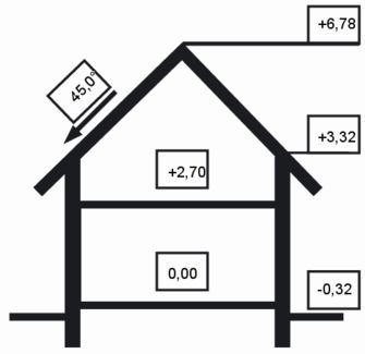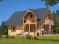 Fundamenty: żelbetowe, wylewane. Ściany zewnętrzne: Z bali drewnianych gr. 16 plus ocieplenie 12 cm. Projekt dopuszcza ściany grubości 12, 20, 24, 30 cm ocieplone od wewnątrz wełną mineralną oraz gr. 62 cm bez ocieplenia. Schody: drewniane. Strop: belkowy, drewniany, otwarty. Dach: dwuspadowy. Pokrycie dachu: dachówka betonowa. Nachylenie dachu: 45°. Sposób ogrzewania: piec dwufunkcyjny na gaz ziemny lub płynny.