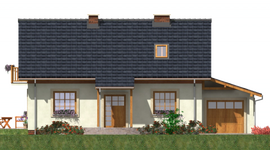 Graficzne opracowanie rzutów poglądowych widocznych na karcie projektu zostało wykonane przez Extradom.pl. Prezentowane przez Extradom.pl wizualizacje wykonane zostały przez autora projektu i należy poczytywać je jedynie za przykład i propozycję wykończenia, wizję architektoniczną autora projektu. Ostateczne wykończenie budynku może nastąpić na wiele sposobów. Szczegółowe rozwiązania zastosowane w oferowanej dokumentacji - w tym również ilość, lokalizacje i wygląd okien, drzwi, kominów - mogą w niewielkim stopniu różnić się od prezentowanej wizualizacji budynku.