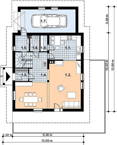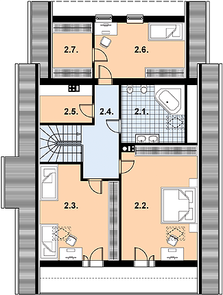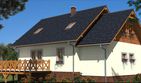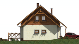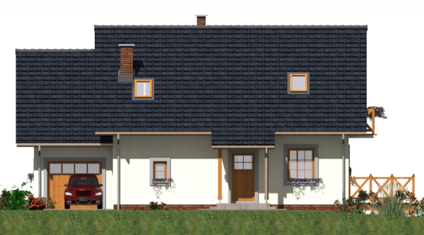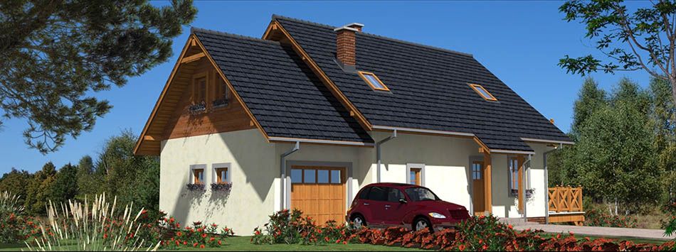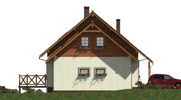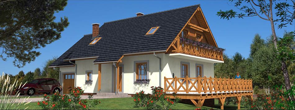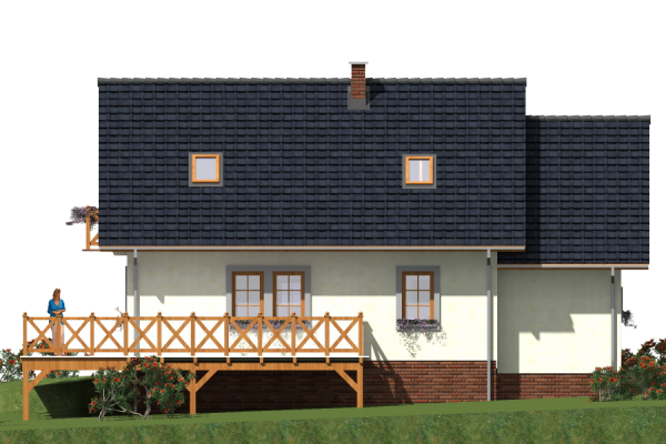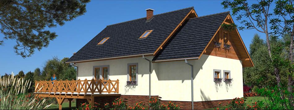 Graficzne opracowanie rzutów poglądowych widocznych na karcie projektu zostało wykonane przez Extradom.pl. Prezentowane przez Extradom.pl wizualizacje wykonane zostały przez autora projektu i należy poczytywać je jedynie za przykład i propozycję wykończenia, wizję architektoniczną autora projektu. Ostateczne wykończenie budynku może nastąpić na wiele sposobów. Szczegółowe rozwiązania zastosowane w oferowanej dokumentacji - w tym również ilość, lokalizacje i wygląd okien, drzwi, kominów - mogą w niewielkim stopniu różnić się od prezentowanej wizualizacji budynku.