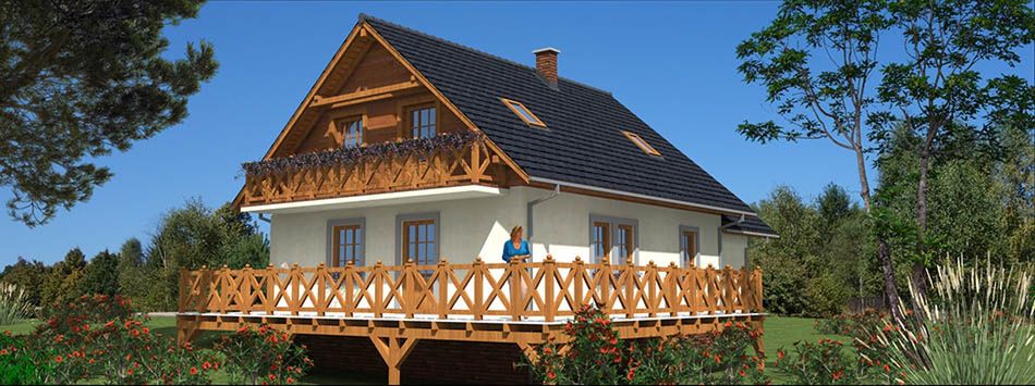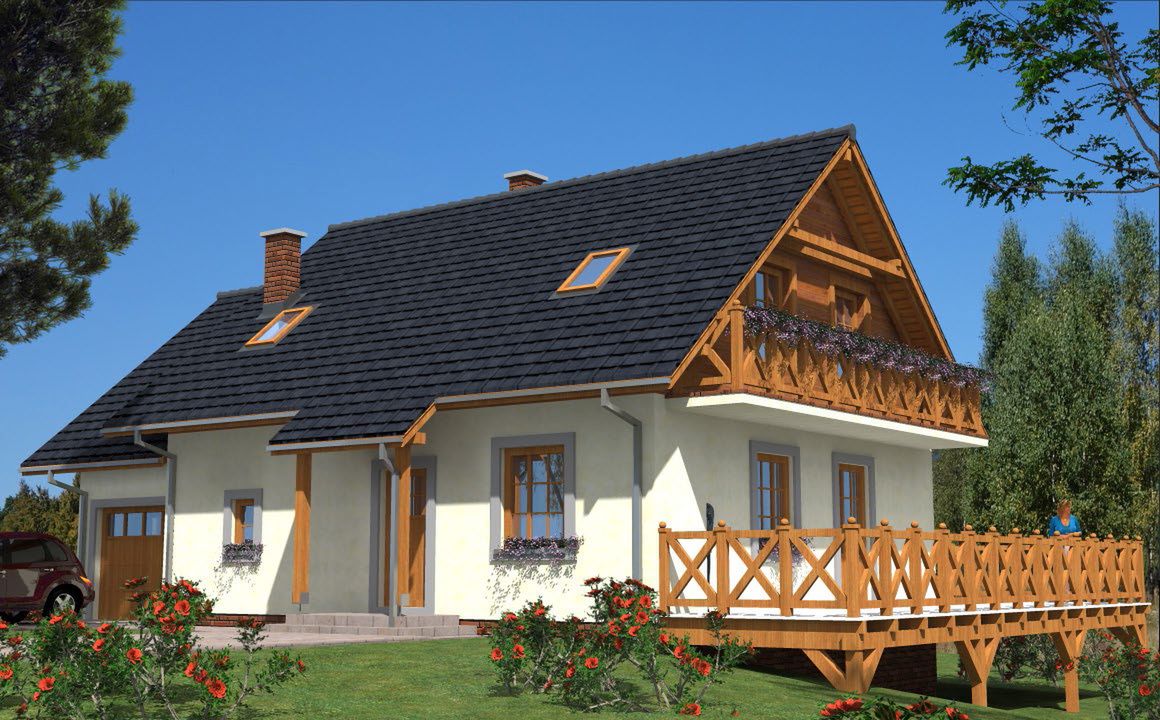 Fundamenty: żelbetowe, wylewane Ściany fundamentów: betonowe wylewane lub z bloczków betonowych. Ściany zewnętrzne: jednowarstwowe beton komórkowy lub pustaki ceramiczne Strop: żelbetowy, prefabrykowany Schody: żelbetowe. Pokrycie dachu: dachówka betonowa. Nachylenie dachu: 40°. Sposób ogrzewania: piec dwufunkcyjny na gaz ziemny lub płynny. Alternatywnie piec na paliwo stałe.