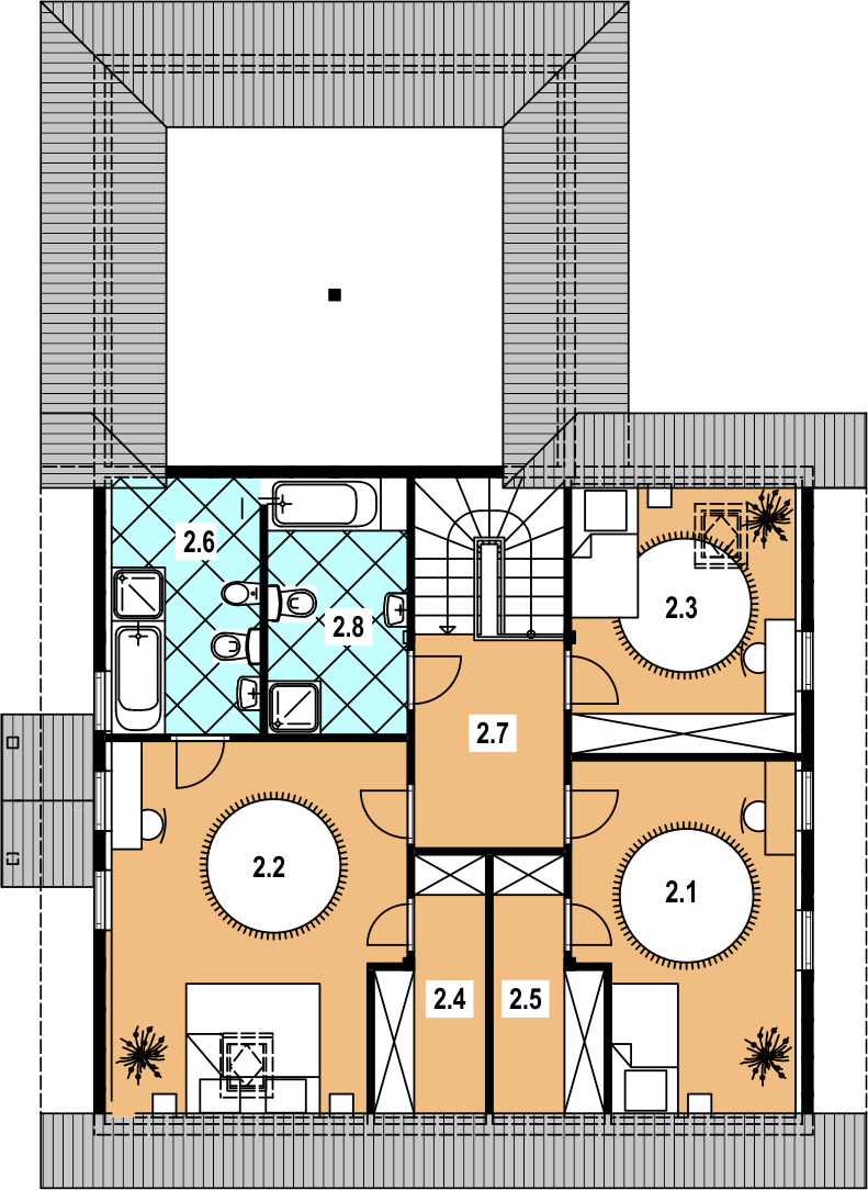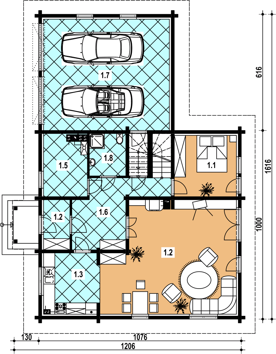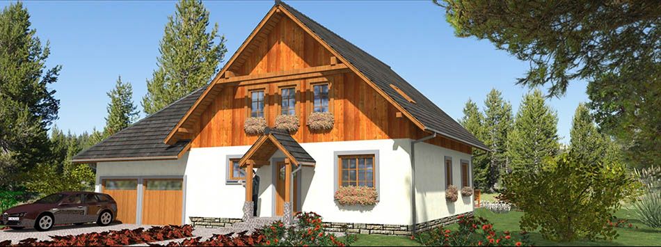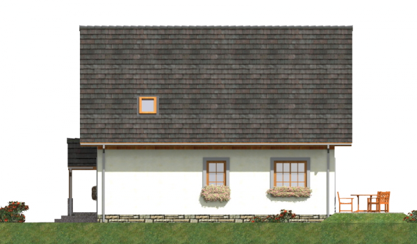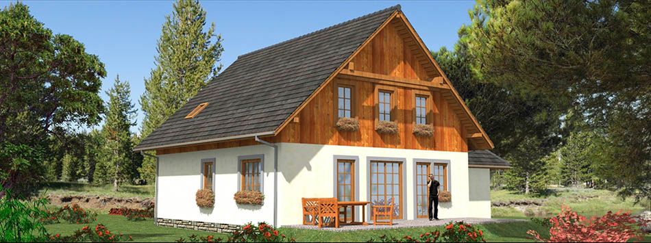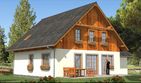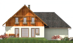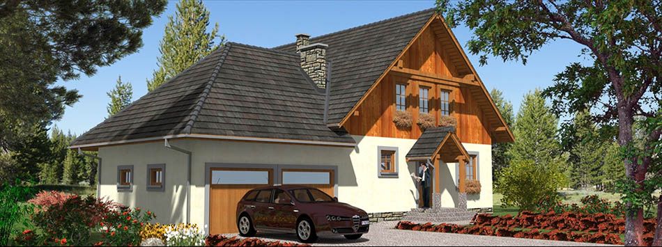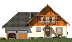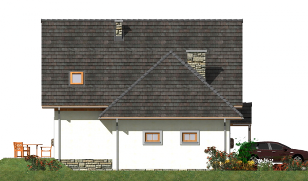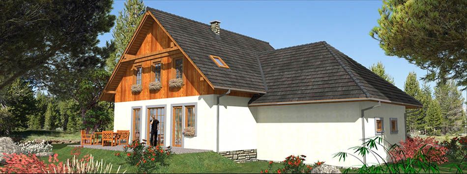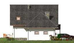 Graficzne opracowanie rzutów poglądowych widocznych na karcie projektu zostało wykonane przez Extradom.pl. Prezentowane przez Extradom.pl wizualizacje wykonane zostały przez autora projektu i należy poczytywać je jedynie za przykład i propozycję wykończenia, wizję architektoniczną autora projektu. Ostateczne wykończenie budynku może nastąpić na wiele sposobów. Szczegółowe rozwiązania zastosowane w oferowanej dokumentacji - w tym również ilość, lokalizacje i wygląd okien, drzwi, kominów - mogą w niewielkim stopniu różnić się od prezentowanej wizualizacji budynku.