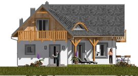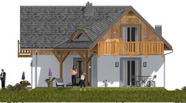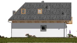 Graficzne opracowanie rzutów poglądowych widocznych na karcie projektu zostało wykonane przez Extradom.pl. Prezentowane przez Extradom.pl wizualizacje wykonane zostały przez autora projektu i należy poczytywać je jedynie za przykład i propozycję wykończenia, wizję architektoniczną autora projektu. Ostateczne wykończenie budynku może nastąpić na wiele sposobów. Szczegółowe rozwiązania zastosowane w oferowanej dokumentacji - w tym również ilość, lokalizacje i wygląd okien, drzwi, kominów - mogą w niewielkim stopniu różnić się od prezentowanej wizualizacji budynku.