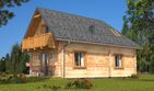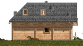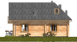Fundamenty: żelbetowe, wylewane. Ściany zewnętrzne: z bali drewnianych gr. 16 plus ocieplenie 12 cm. Projekt dopuszcza ściany grubości 12, 20, 24, 30 cm ocieplone od wewnątrz wełną mineralną oraz gr. 62 cm bez ocieplenia. Schody: drewniane. Strop: belkowy, drewniany, otwarty. Dach: dwuspadowy. Pokrycie dachu: gont bitumiczny. Nachylenie dachu: 45°. Sposób ogrzewania: piec dwufunkcyjny na gaz ziemny lub płynny.