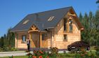 Fundamenty: żelbetowe, wylewane. Ściany zewnętrzne: z bali drewnianych gr. 16 plus ocieplenie 12 cm. Projekt dopuszcza ściany grubości 12, 20, 24, 30 cm ocieplone od wewnątrz wełną mineralną oraz gr. 62 cm bez ocieplenia. Schody: drewniane. Strop: belkowy, drewniany, otwarty. Dach: dwuspadowy. Pokrycie dachu: blachodachówka. Nachylenie dachu: 40°. Sposób ogrzewania: piec dwufunkcyjny na gaz ziemny lub płynny.