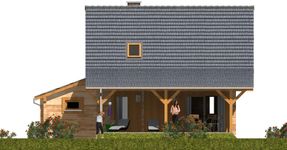 Graficzne opracowanie rzutów poglądowych widocznych na karcie projektu zostało wykonane przez Extradom.pl. Prezentowane przez Extradom.pl wizualizacje wykonane zostały przez autora projektu i należy poczytywać je jedynie za przykład i propozycję wykończenia, wizję architektoniczną autora projektu. Ostateczne wykończenie budynku może nastąpić na wiele sposobów. Szczegółowe rozwiązania zastosowane w oferowanej dokumentacji - w tym również ilość, lokalizacje i wygląd okien, drzwi, kominów - mogą w niewielkim stopniu różnić się od prezentowanej wizualizacji budynku.