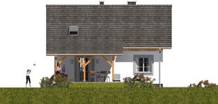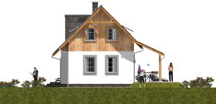 Graficzne opracowanie rzutów poglądowych widocznych na karcie projektu zostało wykonane przez Extradom.pl. Prezentowane przez Extradom.pl wizualizacje wykonane zostały przez autora projektu i należy poczytywać je jedynie za przykład i propozycję wykończenia, wizję architektoniczną autora projektu. Ostateczne wykończenie budynku może nastąpić na wiele sposobów. Szczegółowe rozwiązania zastosowane w oferowanej dokumentacji - w tym również ilość, lokalizacje i wygląd okien, drzwi, kominów - mogą w niewielkim stopniu różnić się od prezentowanej wizualizacji budynku.