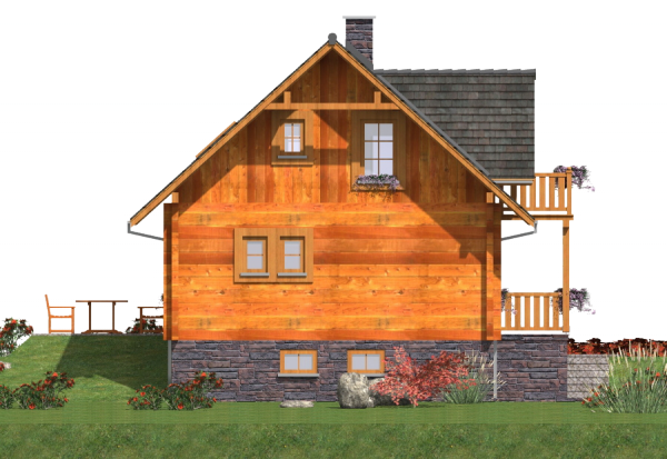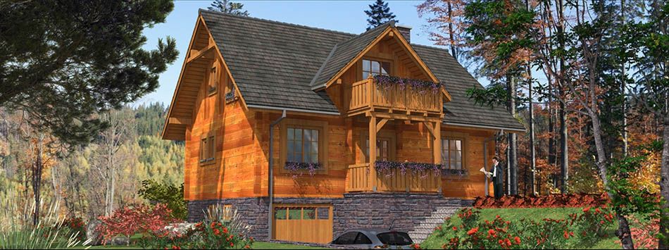 Fundamenty: żelbetowe, wylewane. Ściany zewnętrzne: z bali drewnianych gr. 16 plus ocieplenie 12 cm. Projekt dopuszcza ściany grubości 12, 20, 24, 30 cm ocieplone od wewnątrz wełną mineralną oraz gr. 62 cm bez ocieplenia. Strop: belkowy, drewniany, zamknięty. Schody: drewniane. Pokrycie dachu: dachówka betonowa. Nachylenie dachu: 42°. Sposób ogrzewania: piec dwufunkcyjny na gaz ziemny lub płynny. Istnieje możliwość zastosowania pieca na paliwo stałe. Takie rozwiązanie inwestor może zastosować dokonując zmiany na etapie adaptacji lub w trakcie użytkowania budynku.