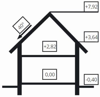 Fundamenty: żelbetowe, wylewane. Ściany zewnętrzne: szkieletowe, ocieplone wełną mineralną. Schody: drewniane. Strop: belkowy, drewniany, zamknięty. Dach: dwuspadowy. Pokrycie dachu: blachodachówka. Nachylenie dachu: 42°. Sposób ogrzewania: Piec dwufunkcyjny na gaz ziemny lub płynny. Istnieje możliwość zastosowania pieca na paliwo stałe. Takie rozwiązanie inwestor może zastosować dokonując zmiany na etapie adaptacji lub w trakcie użytkowania budynku.