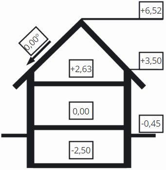Fundamenty: żelbetowe, wylewane. Ściany zewnętrzne: szkieletowe, ocieplone wełną mineralną. Schody: drewniane. Strop: nad piwnicą płta żelbetowa nad parterem belkowy, drewniany, otwarty. Dach: dwuspadowy. Pokrycie dachu: gont bitumiczny. Nachylenie dachu: 40°. Sposób ogrzewania: piec dwufunkcyjny na gaz ziemny lub płynny.