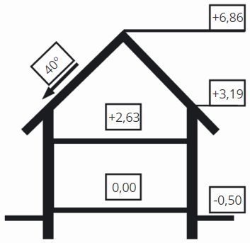 Fundamenty: żelbetowe, wylewane. Ściany zewnętrzne: szkieletowe, ocieplone wełną mineralną. Schody: drewniane. Strop: belkowy, drewniany, otwarty. Dach: dwuspadowy. Pokrycie dachu: gont bitumiczny. Nachylenie dachu: 40°. Sposób ogrzewania: Piec dwufunkcyjny na gaz ziemny lub płynny. Istnieje możliwość zastosowania pieca na paliwo stałe. Takie rozwiązanie inwestor może zastosować dokonując zmiany na etapie adaptacji lub w trakcie użytkowania budynku.