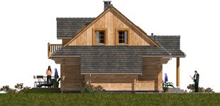 Graficzne opracowanie rzutów poglądowych widocznych na karcie projektu zostało wykonane przez Extradom.pl. Prezentowane przez Extradom.pl wizualizacje wykonane zostały przez autora projektu i należy poczytywać je jedynie za przykład i propozycję wykończenia, wizję architektoniczną autora projektu. Ostateczne wykończenie budynku może nastąpić na wiele sposobów. Szczegółowe rozwiązania zastosowane w oferowanej dokumentacji - w tym również ilość, lokalizacje i wygląd okien, drzwi, kominów - mogą w niewielkim stopniu różnić się od prezentowanej wizualizacji budynku.