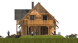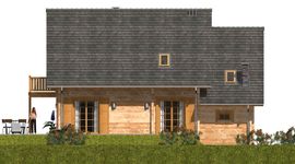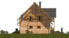 Fundamenty: żelbetowe, wylewane. Ściany zewnętrzne: z bali drewnianych gr. 16 plus ocieplenie 12 cm. Schody: drewniane. Strop: belkowy, drewniany, zamknięty. Dach: dwuspadowy. Pokrycie dachu: gont bitumiczny. Nachylenie dachu: 45°. Sposób ogrzewania: Piec dwufunkcyjny na gaz ziemny lub płynny. Istnieje możliwość zastosowania pieca na paliwo stałe. Takie rozwiązanie inwestor może zastosować dokonując zmiany na etapie adaptacji lub w trakcie użytkowania budynku.
