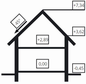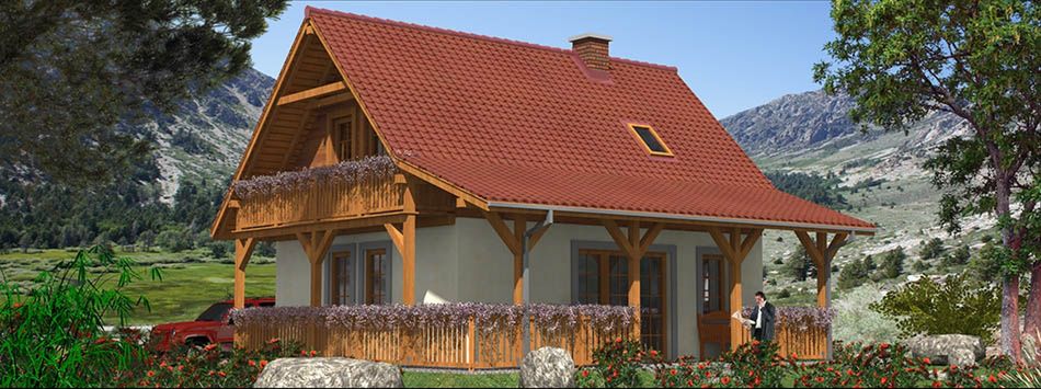 Fundamenty: żelbetowe, wylewane Ściany zewnetrzne: murowane, jednowarstwowe, beton komórkowy lub ceramika Strop: żelbetowy, prefabrykowany Schody: żelbetowe lub drewniane. Pokrycie dachu: dachówka betonowa. Nachylenie dachu: 45° i 20°. Sposób ogrzewania: piec dwufunkcyjny na gaz ziemny lub płynny.