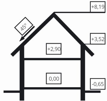 Fundamenty: żelbetowe, wylewane. Ściany zewnętrzne: szkieletowe, ocieplone wełną mineralną. Schody: drewniane. Strop: belkowy, drewniany, zamknięty. Dach: dwuspadowy. Pokrycie dachu: gont bitumiczny. Nachylenie dachu: 45° i 18°. Sposób ogrzewania: Piec dwufunkcyjny na gaz ziemny lub płynny. Istnieje możliwość zastosowania pieca na paliwo stałe. Takie rozwiązanie inwestor może zastosować dokonując zmiany na etapie adaptacji lub w trakcie użytkowania budynku.