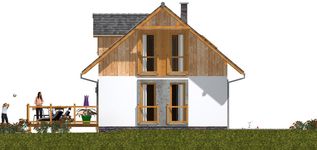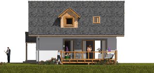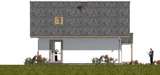 Graficzne opracowanie rzutów poglądowych widocznych na karcie projektu zostało wykonane przez Extradom.pl. Prezentowane przez Extradom.pl wizualizacje wykonane zostały przez autora projektu i należy poczytywać je jedynie za przykład i propozycję wykończenia, wizję architektoniczną autora projektu. Ostateczne wykończenie budynku może nastąpić na wiele sposobów. Szczegółowe rozwiązania zastosowane w oferowanej dokumentacji - w tym również ilość, lokalizacje i wygląd okien, drzwi, kominów - mogą w niewielkim stopniu różnić się od prezentowanej wizualizacji budynku.
