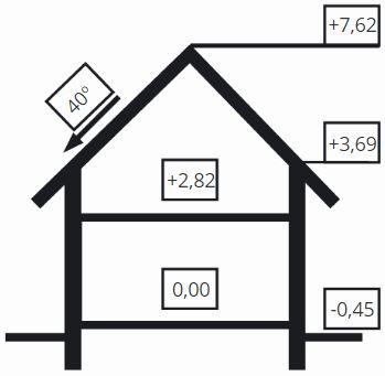 Fundamenty: żelbetowe, wylewane. Ściany zewnętrzne: szkieletowe, ocieplone wełną mineralną. Schody: drewniane. Strop: belkowy, drewniany, zamknięty. Dach: dwuspadowy. Pokrycie dachu: dachówka betonowa. Nachylenie dachu: 40° i 25°. Sposób ogrzewania: Piec dwufunkcyjny na gaz ziemny lub płynny. Istnieje możliwość zastosowania pieca na paliwo stałe. Takie rozwiązanie inwestor może zastosować dokonując zmiany na etapie adaptacji lub w trakcie użytkowania budynku.