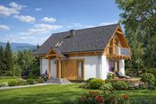 Graficzne opracowanie rzutów poglądowych widocznych na karcie projektu zostało wykonane przez Extradom.pl. Prezentowane przez Extradom.pl wizualizacje wykonane zostały przez autora projektu i należy poczytywać je jedynie za przykład i propozycję wykończenia, wizję architektoniczną autora projektu. Ostateczne wykończenie budynku może nastąpić na wiele sposobów. Szczegółowe rozwiązania zastosowane w oferowanej dokumentacji - w tym również ilość, lokalizacje i wygląd okien, drzwi, kominów - mogą w niewielkim stopniu różnić się od prezentowanej wizualizacji budynku.