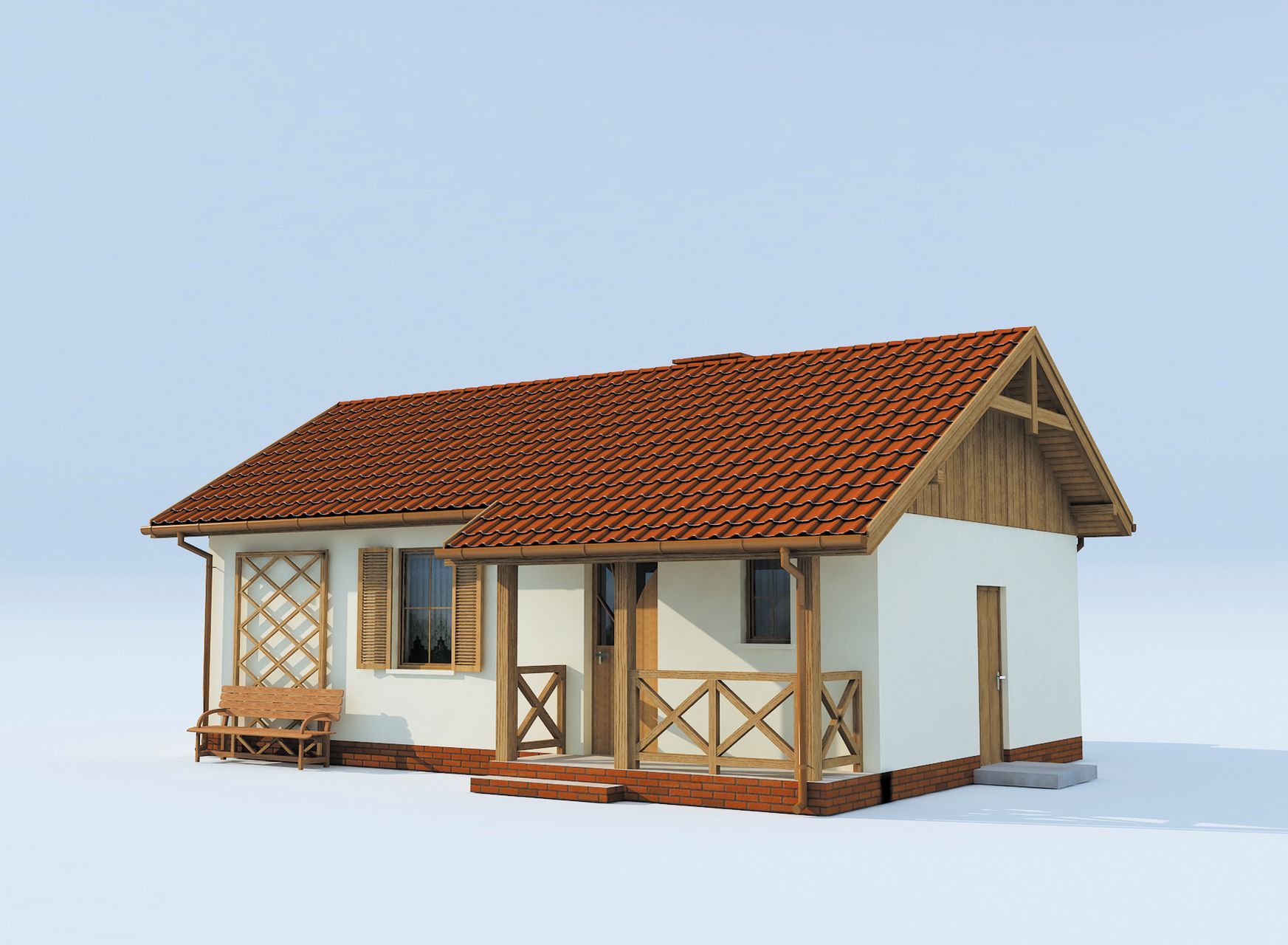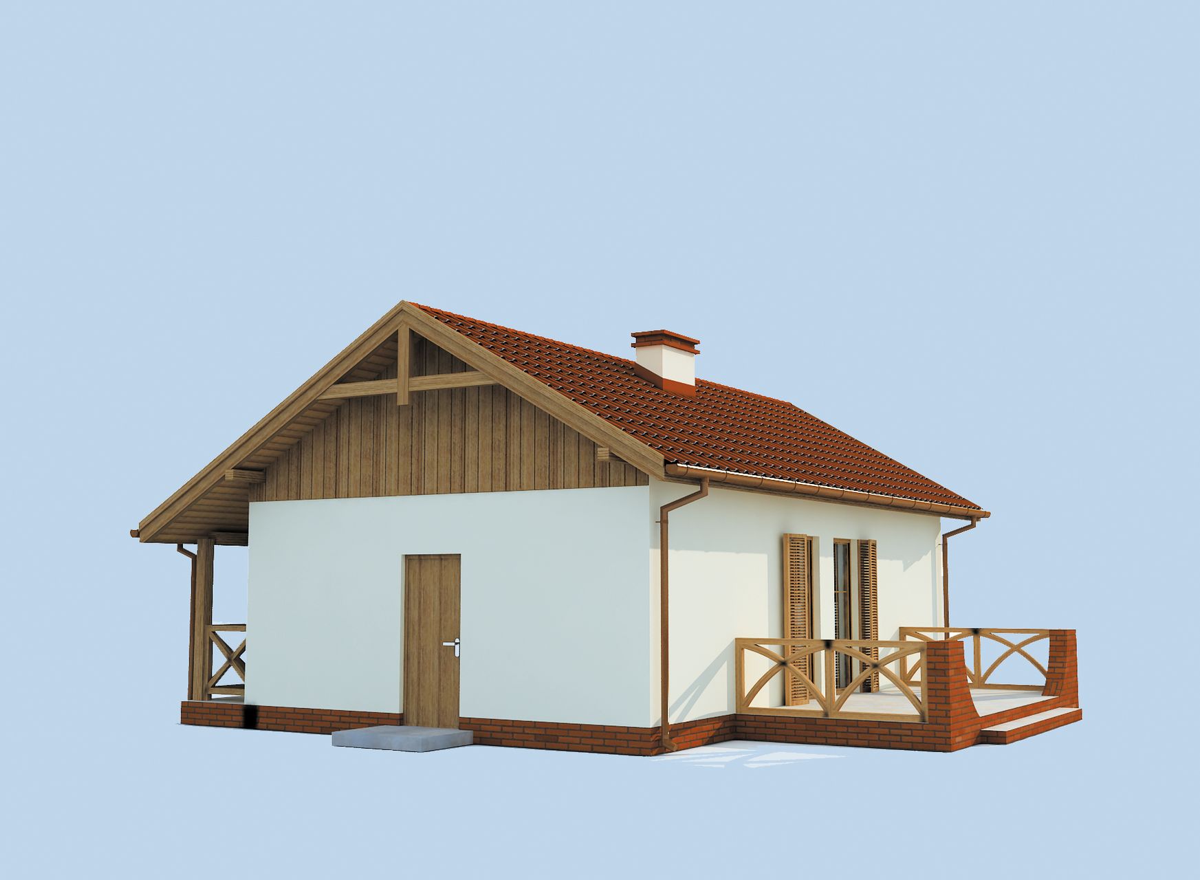 Graficzne opracowanie rzutów poglądowych widocznych na karcie projektu zostało wykonane przez Extradom.pl. Prezentowane przez Extradom.pl wizualizacje wykonane zostały przez autora projektu i należy poczytywać je jedynie za przykład i propozycję wykończenia, wizję architektoniczną autora projektu. Ostateczne wykończenie budynku może nastąpić na wiele sposobów. Szczegółowe rozwiązania zastosowane w oferowanej dokumentacji - w tym również ilość, lokalizacje i wygląd okien, drzwi, kominów - mogą w niewielkim stopniu różnić się od prezentowanej wizualizacji budynku.