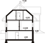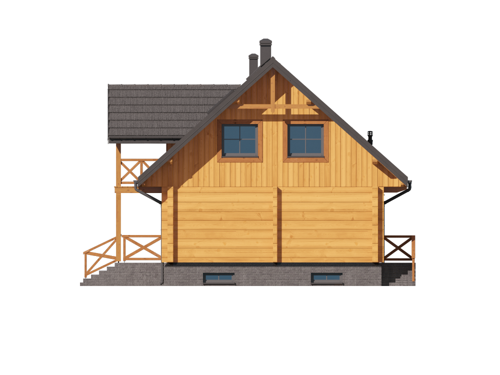 Graficzne opracowanie rzutów poglądowych widocznych na karcie projektu zostało wykonane przez Extradom.pl. Prezentowane przez Extradom.pl wizualizacje wykonane zostały przez autora projektu i należy poczytywać je jedynie za przykład i propozycję wykończenia, wizję architektoniczną autora projektu. Ostateczne wykończenie budynku może nastąpić na wiele sposobów. Szczegółowe rozwiązania zastosowane w oferowanej dokumentacji - w tym również ilość, lokalizacje i wygląd okien, drzwi, kominów - mogą w niewielkim stopniu różnić się od prezentowanej wizualizacji budynku.