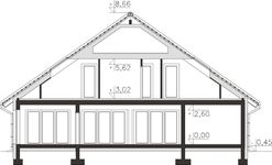 Graficzne opracowanie rzutów poglądowych widocznych na karcie projektu zostało wykonane przez Extradom.pl. Prezentowane przez Extradom.pl wizualizacje wykonane zostały przez autora projektu i należy poczytywać je jedynie za przykład i propozycję wykończenia, wizję architektoniczną autora projektu. Ostateczne wykończenie budynku może nastąpić na wiele sposobów. Szczegółowe rozwiązania zastosowane w oferowanej dokumentacji - w tym również ilość, lokalizacje i wygląd okien, drzwi, kominów - mogą w niewielkim stopniu różnić się od prezentowanej wizualizacji budynku.
