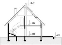 Technologia i konstrukcja: murowana – silikaty. Ściany zewnętrzne: bloczki Silka E gr. 24 cm + ocieplenie z wełny mineralnej gr. 20 cm. Ściany wewnętrzne: konstrukcyjne: bloczki silikatowe Silka E gr. 24 cm; działowe: bloczki Silka E gr. 12 cm. Strop: żelbetowy monolityczny. Konstrukcja dachu: drewniana jętkowa. Rodzaj schodów: żelbetowe monolityczne. Typ ogrzewania: kocioł na gaz. Aneks na paliwo stałe: na zamówienie. Pokrycie dachu: dachówka ceramiczna. Elewacja: tynk mineralny.