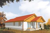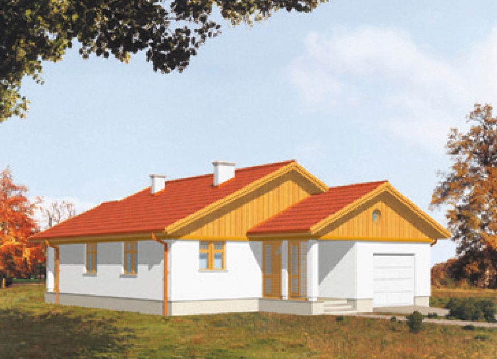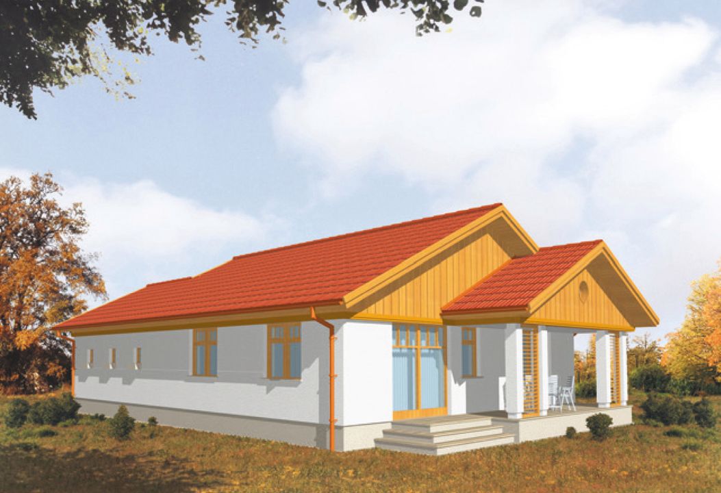 Graficzne opracowanie rzutów poglądowych widocznych na karcie projektu zostało wykonane przez Extradom.pl. Prezentowane przez Extradom.pl wizualizacje wykonane zostały przez autora projektu i należy poczytywać je jedynie za przykład i propozycję wykończenia, wizję architektoniczną autora projektu. Ostateczne wykończenie budynku może nastąpić na wiele sposobów. Szczegółowe rozwiązania zastosowane w oferowanej dokumentacji - w tym również ilość, lokalizacje i wygląd okien, drzwi, kominów - mogą w niewielkim stopniu różnić się od prezentowanej wizualizacji budynku.