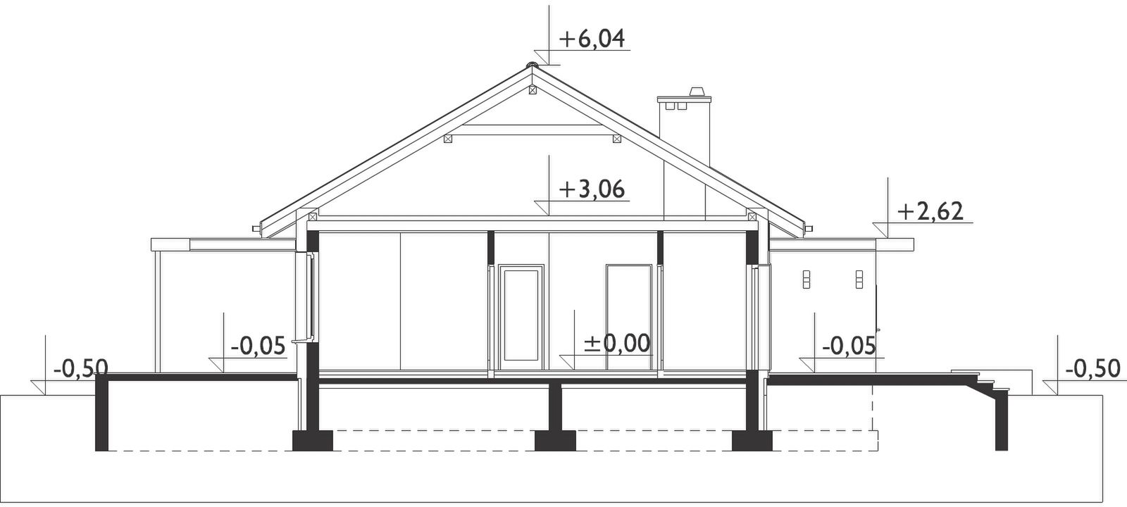 Wersja technologiczna: murowana - beton komórkowy. Strop: drewniany belkowy. Typ schodów: brak. Konstrukcja dachu: drewniana krokwiowo-jętkowa. Typ ogrzewania: Kocioł na gaz. Dostępna wersja z pompą ciepła: Tak. Ściany zewnętrzne: 24 cm beton komórkowy. Ściany wewnętrzne: 24 cm beton komórkowy. Ściany wewnętrzne działowe: 12 cm beton komórkowy.