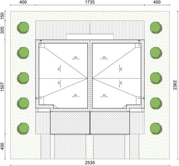 Graficzne opracowanie rzutów poglądowych widocznych na karcie projektu zostało wykonane przez Extradom.pl. Prezentowane przez Extradom.pl wizualizacje wykonane zostały przez autora projektu i należy poczytywać je jedynie za przykład i propozycję wykończenia, wizję architektoniczną autora projektu. Ostateczne wykończenie budynku może nastąpić na wiele sposobów. Szczegółowe rozwiązania zastosowane w oferowanej dokumentacji - w tym również ilość, lokalizacje i wygląd okien, drzwi, kominów - mogą w niewielkim stopniu różnić się od prezentowanej wizualizacji budynku.