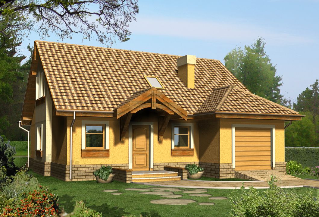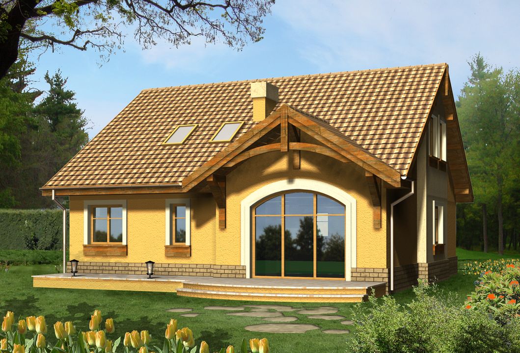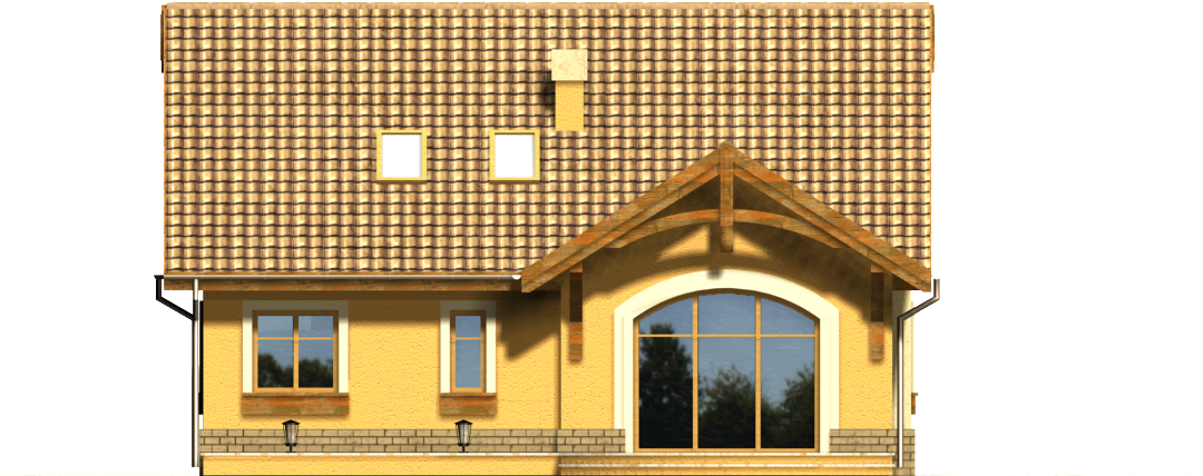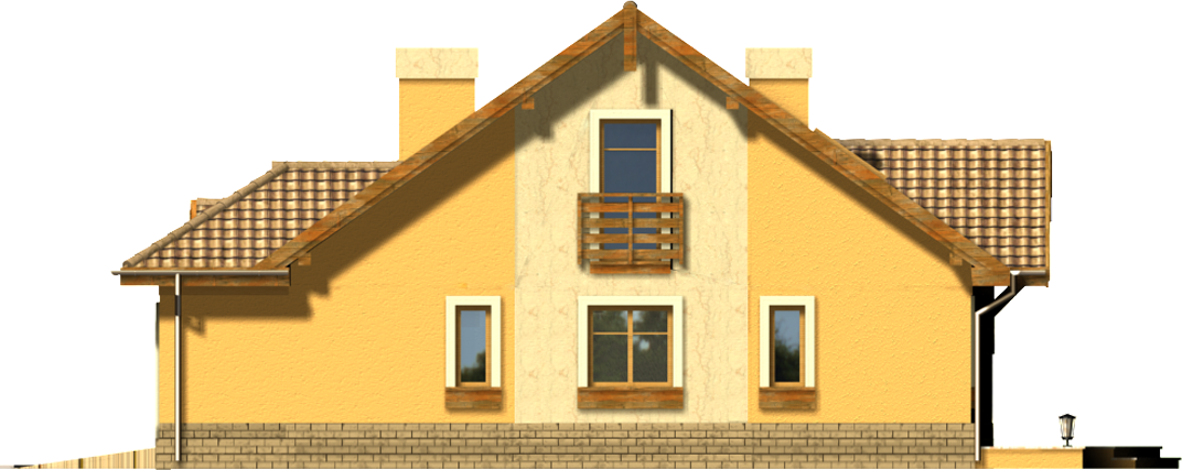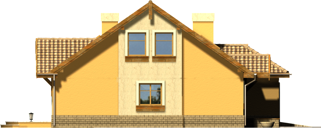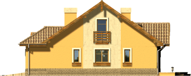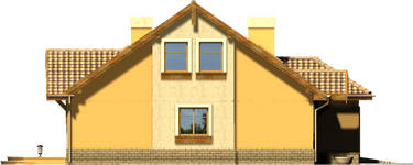 Graficzne opracowanie rzutów poglądowych widocznych na karcie projektu zostało wykonane przez Extradom.pl. Prezentowane przez Extradom.pl wizualizacje wykonane zostały przez autora projektu i należy poczytywać je jedynie za przykład i propozycję wykończenia, wizję architektoniczną autora projektu. Ostateczne wykończenie budynku może nastąpić na wiele sposobów. Szczegółowe rozwiązania zastosowane w oferowanej dokumentacji - w tym również ilość, lokalizacje i wygląd okien, drzwi, kominów - mogą w niewielkim stopniu różnić się od prezentowanej wizualizacji budynku.