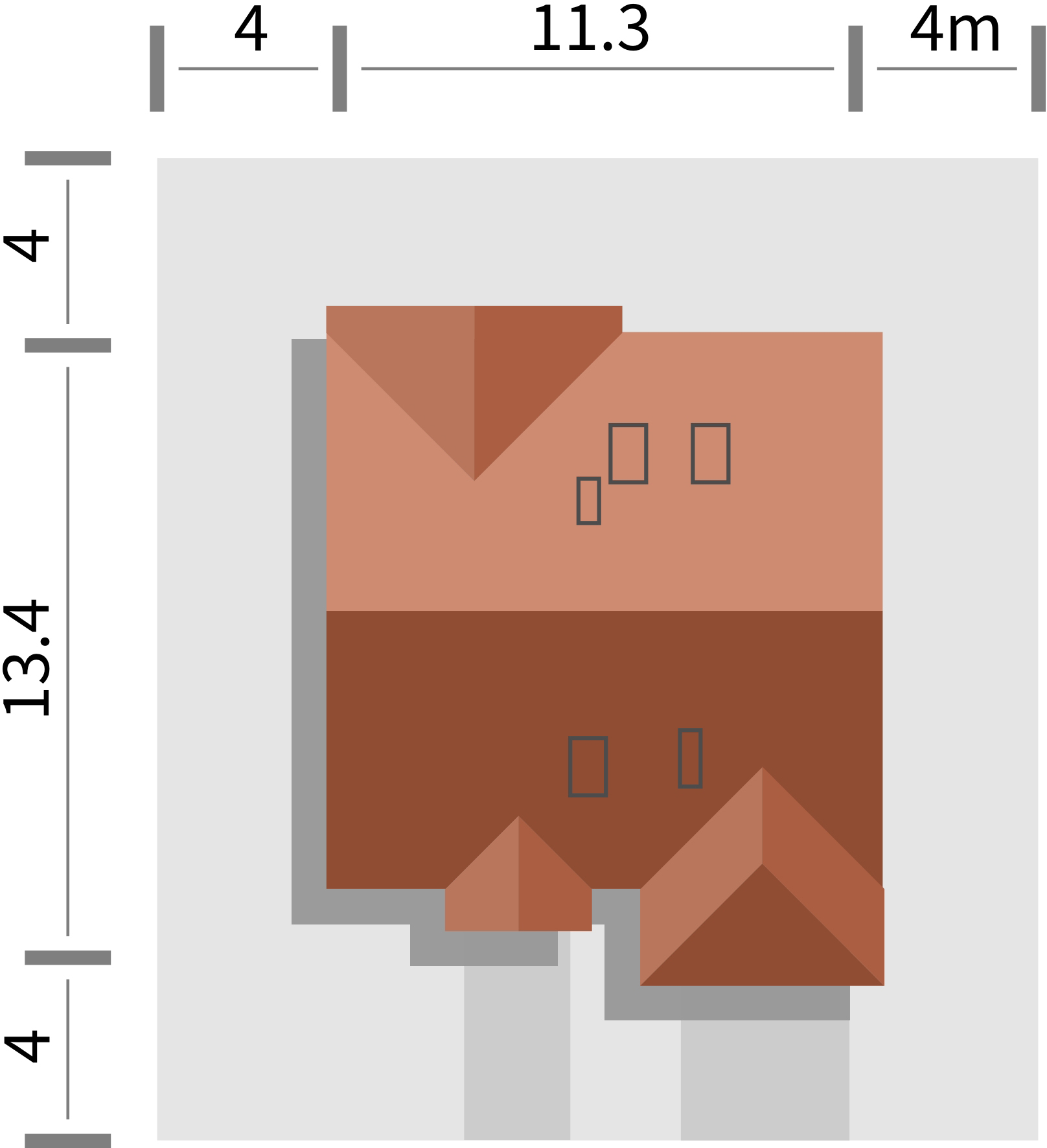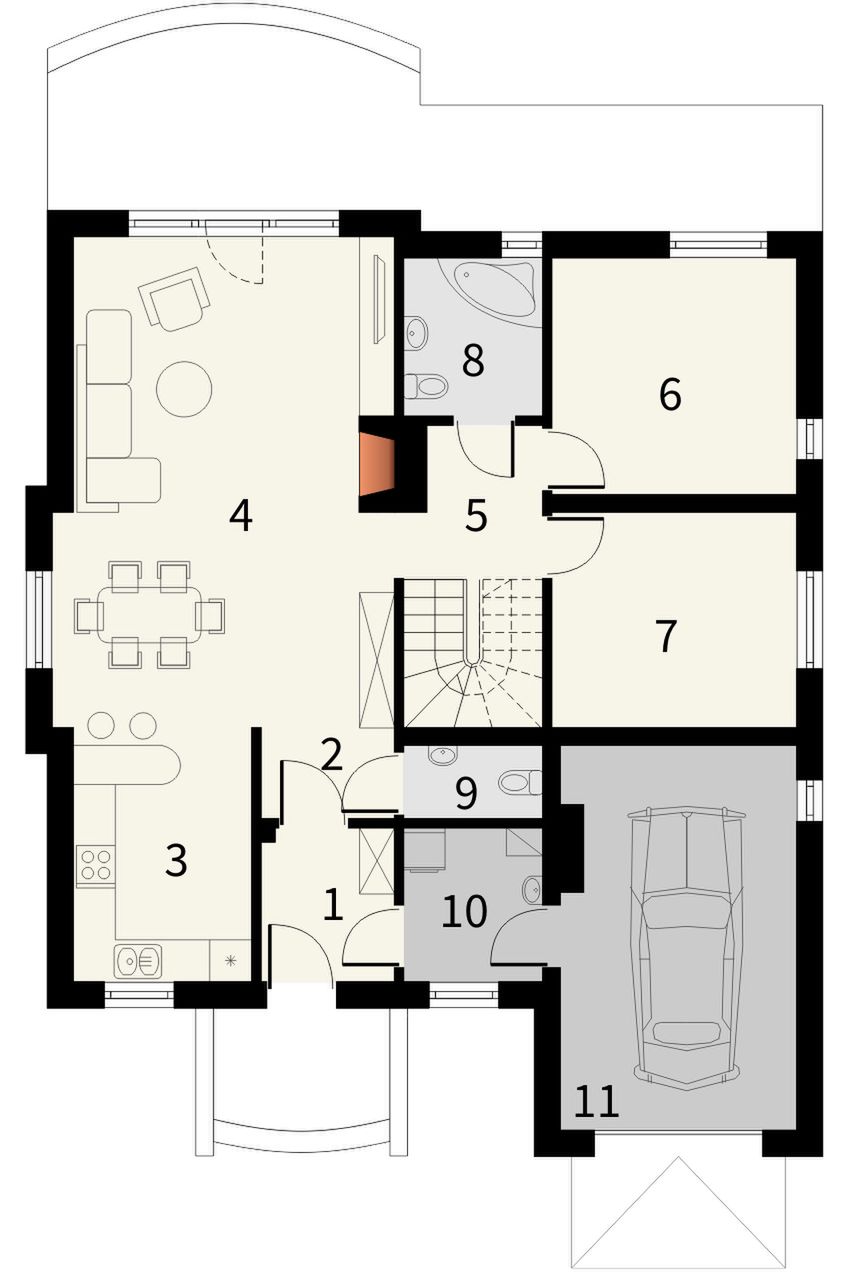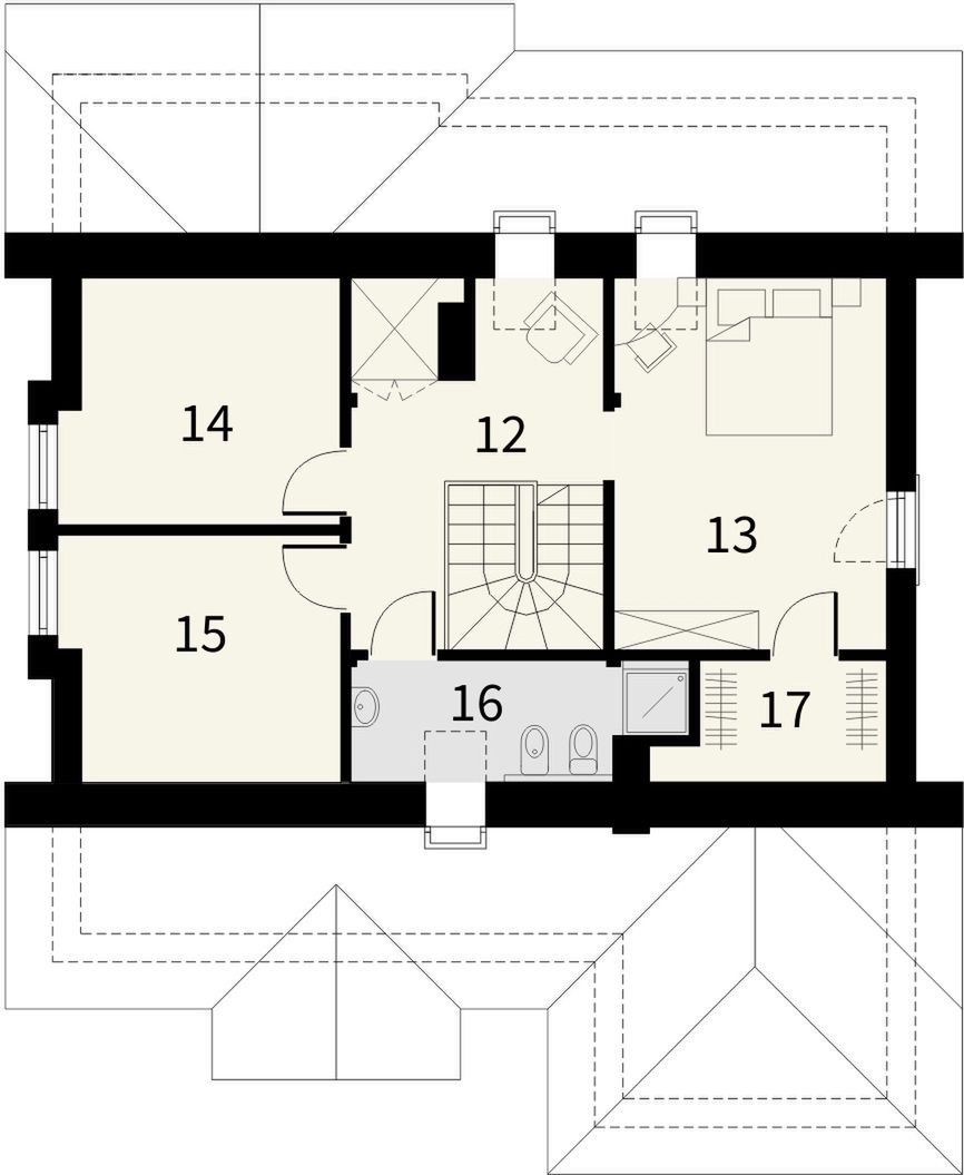 Graficzne opracowanie rzutów poglądowych widocznych na karcie projektu zostało wykonane przez Extradom.pl. Prezentowane przez Extradom.pl wizualizacje wykonane zostały przez autora projektu i należy poczytywać je jedynie za przykład i propozycję wykończenia, wizję architektoniczną autora projektu. Ostateczne wykończenie budynku może nastąpić na wiele sposobów. Szczegółowe rozwiązania zastosowane w oferowanej dokumentacji - w tym również ilość, lokalizacje i wygląd okien, drzwi, kominów - mogą w niewielkim stopniu różnić się od prezentowanej wizualizacji budynku.