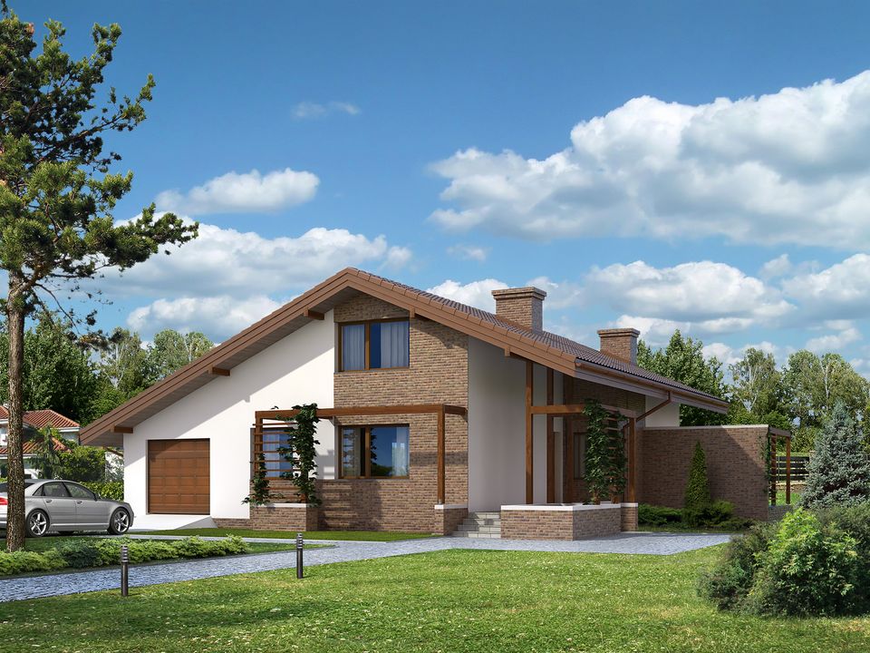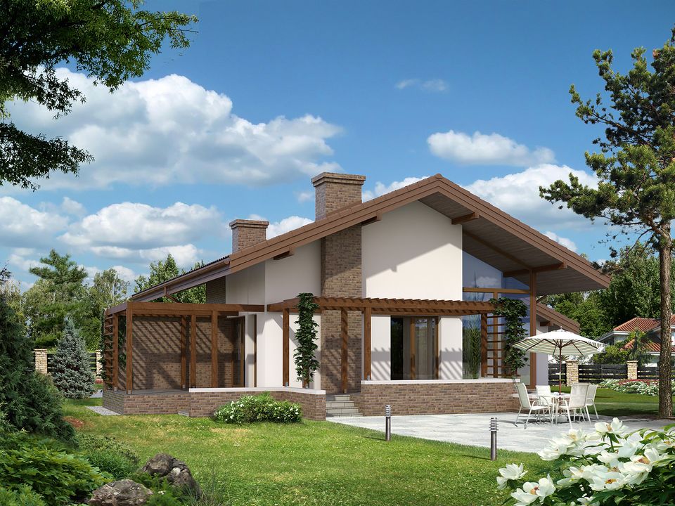 Graficzne opracowanie rzutów poglądowych widocznych na karcie projektu zostało wykonane przez Extradom.pl. Prezentowane przez Extradom.pl wizualizacje wykonane zostały przez autora projektu i należy poczytywać je jedynie za przykład i propozycję wykończenia, wizję architektoniczną autora projektu. Ostateczne wykończenie budynku może nastąpić na wiele sposobów. Szczegółowe rozwiązania zastosowane w oferowanej dokumentacji - w tym również ilość, lokalizacje i wygląd okien, drzwi, kominów - mogą w niewielkim stopniu różnić się od prezentowanej wizualizacji budynku.
