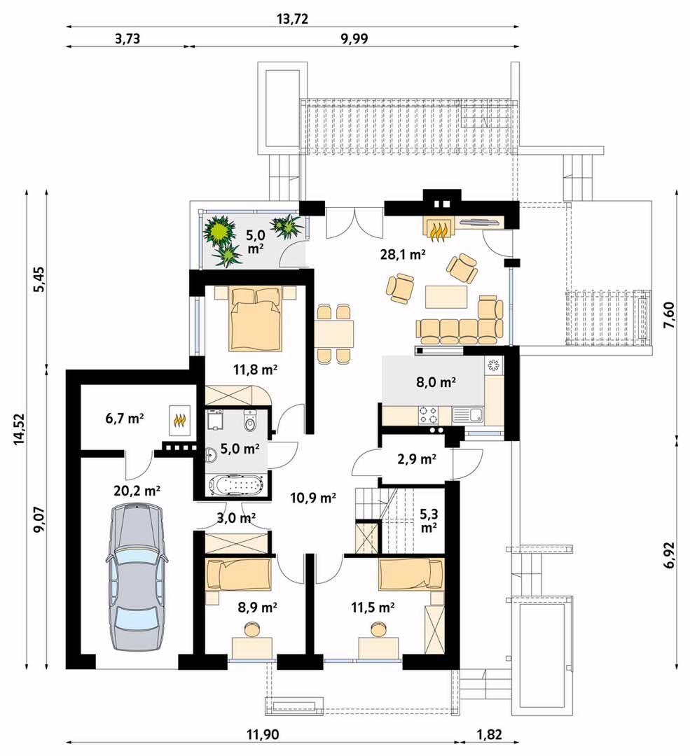 Istnieje możliwość zaadaptowania tego projektu do technologii prefabrykowanej/modułowej i budowy nawet w 6 miesięcy ze stałym kosztem budowy