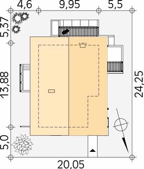 Graficzne opracowanie rzutów poglądowych widocznych na karcie projektu zostało wykonane przez Extradom.pl. Prezentowane przez Extradom.pl wizualizacje wykonane zostały przez autora projektu i należy poczytywać je jedynie za przykład i propozycję wykończenia, wizję architektoniczną autora projektu. Ostateczne wykończenie budynku może nastąpić na wiele sposobów. Szczegółowe rozwiązania zastosowane w oferowanej dokumentacji - w tym również ilość, lokalizacje i wygląd okien, drzwi, kominów - mogą w niewielkim stopniu różnić się od prezentowanej wizualizacji budynku.