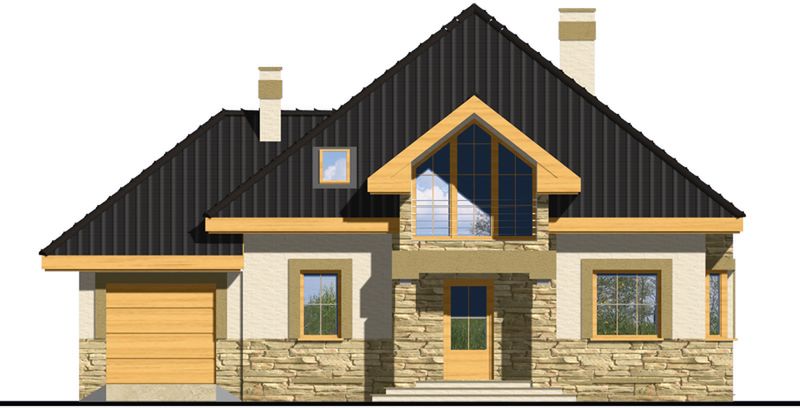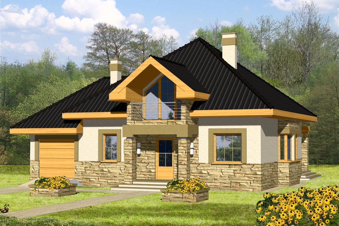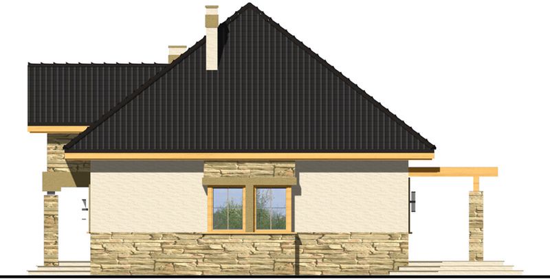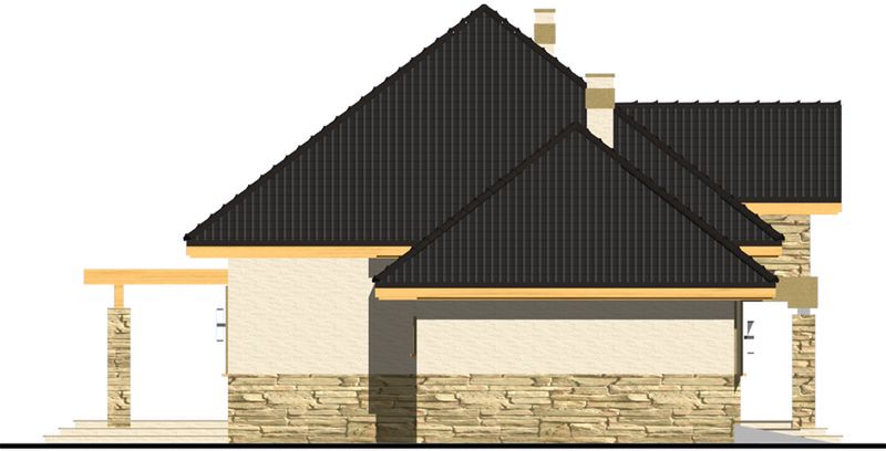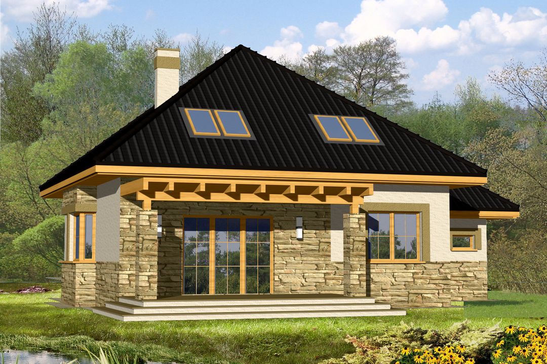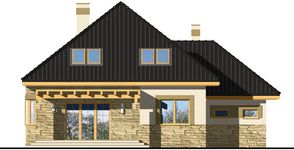 Graficzne opracowanie rzutów poglądowych widocznych na karcie projektu zostało wykonane przez Extradom.pl. Prezentowane przez Extradom.pl wizualizacje wykonane zostały przez autora projektu i należy poczytywać je jedynie za przykład i propozycję wykończenia, wizję architektoniczną autora projektu. Ostateczne wykończenie budynku może nastąpić na wiele sposobów. Szczegółowe rozwiązania zastosowane w oferowanej dokumentacji - w tym również ilość, lokalizacje i wygląd okien, drzwi, kominów - mogą w niewielkim stopniu różnić się od prezentowanej wizualizacji budynku.