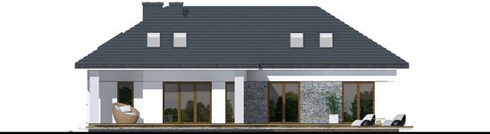 Graficzne opracowanie rzutów poglądowych widocznych na karcie projektu zostało wykonane przez Extradom.pl. Prezentowane przez Extradom.pl wizualizacje wykonane zostały przez autora projektu i należy poczytywać je jedynie za przykład i propozycję wykończenia, wizję architektoniczną autora projektu. Ostateczne wykończenie budynku może nastąpić na wiele sposobów. Szczegółowe rozwiązania zastosowane w oferowanej dokumentacji - w tym również ilość, lokalizacje i wygląd okien, drzwi, kominów - mogą w niewielkim stopniu różnić się od prezentowanej wizualizacji budynku.