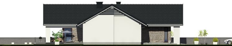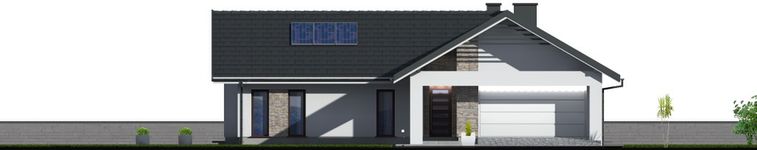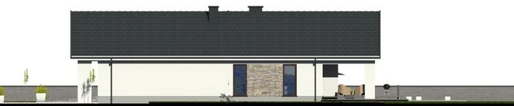 Graficzne opracowanie rzutów poglądowych widocznych na karcie projektu zostało wykonane przez Extradom.pl. Prezentowane przez Extradom.pl wizualizacje wykonane zostały przez autora projektu i należy poczytywać je jedynie za przykład i propozycję wykończenia, wizję architektoniczną autora projektu. Ostateczne wykończenie budynku może nastąpić na wiele sposobów. Szczegółowe rozwiązania zastosowane w oferowanej dokumentacji - w tym również ilość, lokalizacje i wygląd okien, drzwi, kominów - mogą w niewielkim stopniu różnić się od prezentowanej wizualizacji budynku.