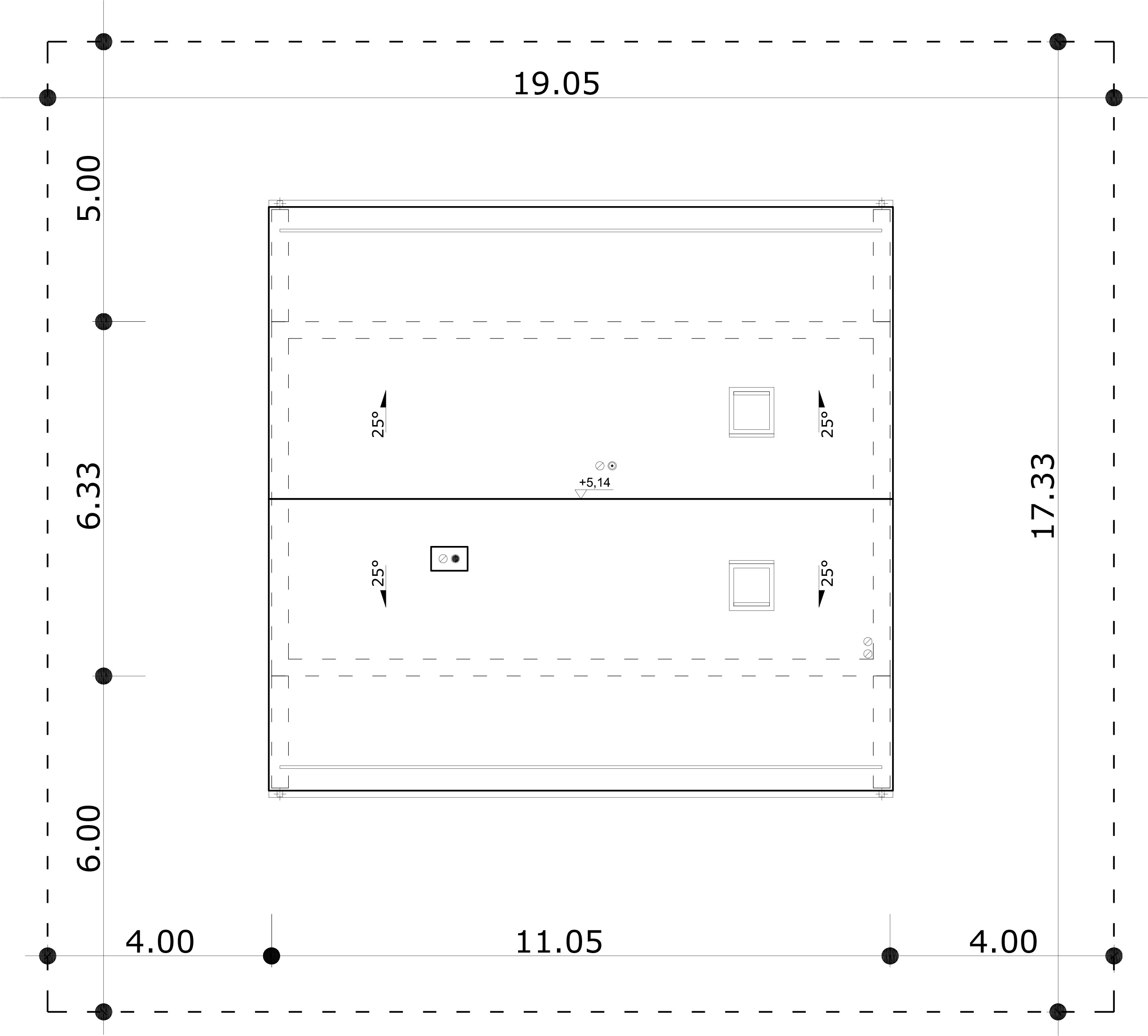 Posadowienie budynku: płyta fundamentowa; Ściany zewnętrzne: ściana szkieletowa 30cm; Ściany wewnętrzne: ściana szkieletowa 17cm; 12 cm; Strop nad parterem: przestrzeń otwarta; Konstrukcja dachu: drewniana jętkowa; Pokrycie dachu: blacha; Elewacja: deska/ tynk;