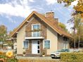 Ściany: 2-warstwowe - YTONG 24 cm + styropian. Stropy: żelbetowe, wylewane. Dach: dachówka, kąt nachylenia 40°. Ogrzewanie: gazowe.