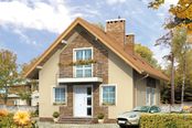 Graficzne opracowanie rzutów poglądowych widocznych na karcie projektu zostało wykonane przez Extradom.pl. Prezentowane przez Extradom.pl wizualizacje wykonane zostały przez autora projektu i należy poczytywać je jedynie za przykład i propozycję wykończenia, wizję architektoniczną autora projektu. Ostateczne wykończenie budynku może nastąpić na wiele sposobów. Szczegółowe rozwiązania zastosowane w oferowanej dokumentacji - w tym również ilość, lokalizacje i wygląd okien, drzwi, kominów - mogą w niewielkim stopniu różnić się od prezentowanej wizualizacji budynku.