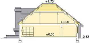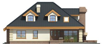 Graficzne opracowanie rzutów poglądowych widocznych na karcie projektu zostało wykonane przez Extradom.pl. Prezentowane przez Extradom.pl wizualizacje wykonane zostały przez autora projektu i należy poczytywać je jedynie za przykład i propozycję wykończenia, wizję architektoniczną autora projektu. Ostateczne wykończenie budynku może nastąpić na wiele sposobów. Szczegółowe rozwiązania zastosowane w oferowanej dokumentacji - w tym również ilość, lokalizacje i wygląd okien, drzwi, kominów - mogą w niewielkim stopniu różnić się od prezentowanej wizualizacji budynku.