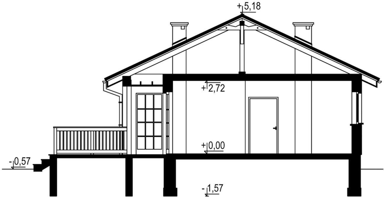 Graficzne opracowanie rzutów poglądowych widocznych na karcie projektu zostało wykonane przez Extradom.pl. Prezentowane przez Extradom.pl wizualizacje wykonane zostały przez autora projektu i należy poczytywać je jedynie za przykład i propozycję wykończenia, wizję architektoniczną autora projektu. Ostateczne wykończenie budynku może nastąpić na wiele sposobów. Szczegółowe rozwiązania zastosowane w oferowanej dokumentacji - w tym również ilość, lokalizacje i wygląd okien, drzwi, kominów - mogą w niewielkim stopniu różnić się od prezentowanej wizualizacji budynku.