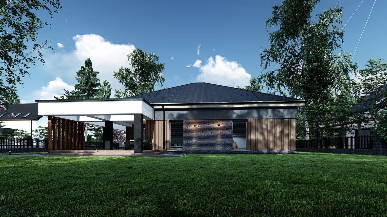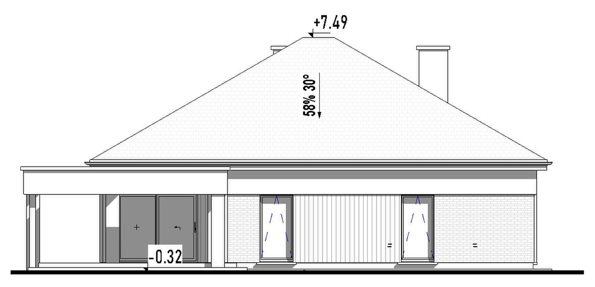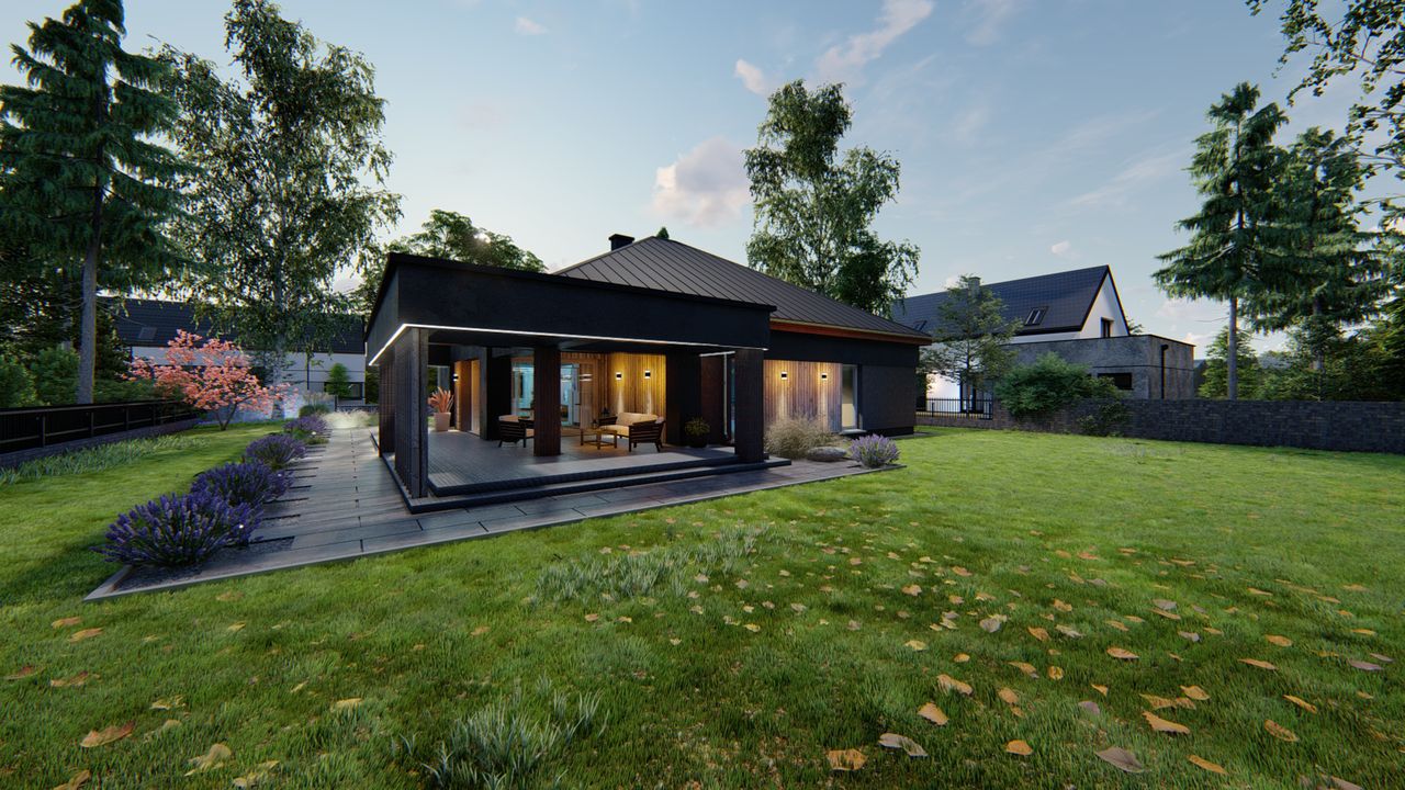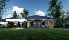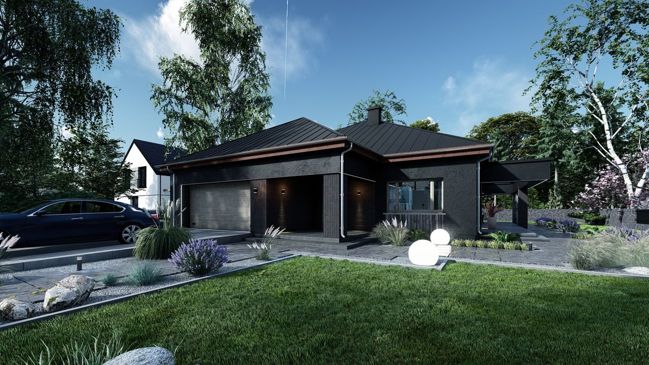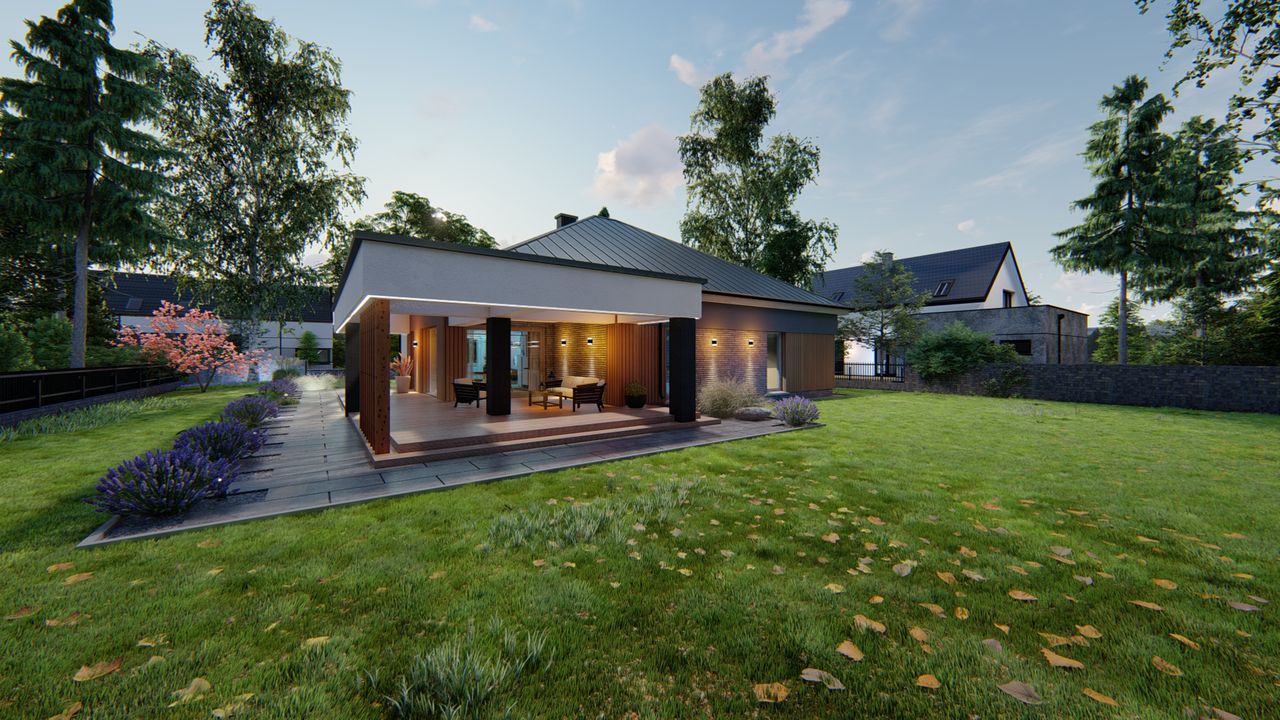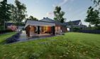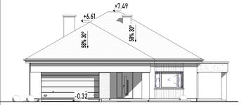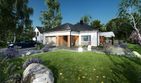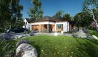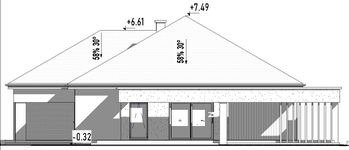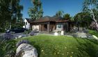 Graficzne opracowanie rzutów poglądowych widocznych na karcie projektu zostało wykonane przez Extradom.pl. Prezentowane przez Extradom.pl wizualizacje wykonane zostały przez autora projektu i należy poczytywać je jedynie za przykład i propozycję wykończenia, wizję architektoniczną autora projektu. Ostateczne wykończenie budynku może nastąpić na wiele sposobów. Szczegółowe rozwiązania zastosowane w oferowanej dokumentacji - w tym również ilość, lokalizacje i wygląd okien, drzwi, kominów - mogą w niewielkim stopniu różnić się od prezentowanej wizualizacji budynku.