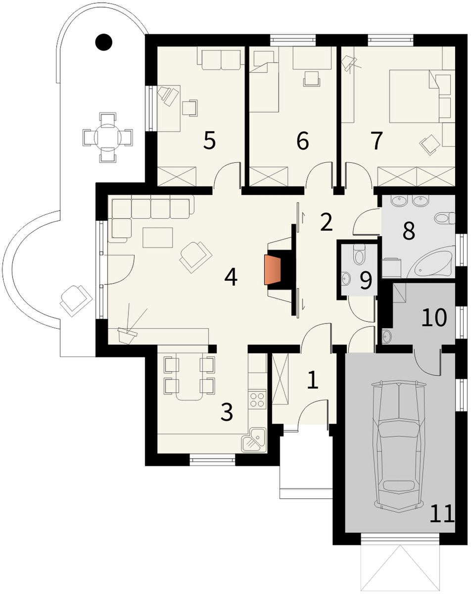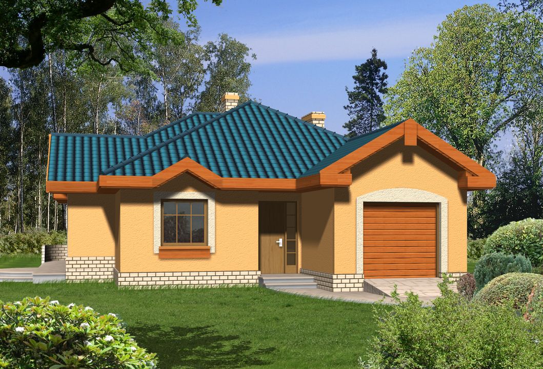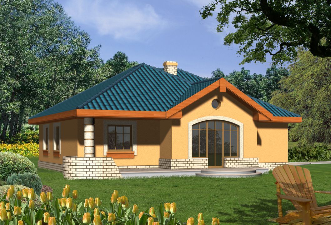 Graficzne opracowanie rzutów poglądowych widocznych na karcie projektu zostało wykonane przez Extradom.pl. Prezentowane przez Extradom.pl wizualizacje wykonane zostały przez autora projektu i należy poczytywać je jedynie za przykład i propozycję wykończenia, wizję architektoniczną autora projektu. Ostateczne wykończenie budynku może nastąpić na wiele sposobów. Szczegółowe rozwiązania zastosowane w oferowanej dokumentacji - w tym również ilość, lokalizacje i wygląd okien, drzwi, kominów - mogą w niewielkim stopniu różnić się od prezentowanej wizualizacji budynku.