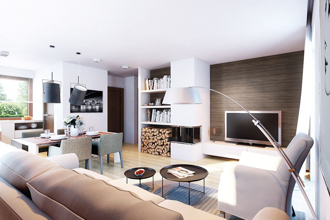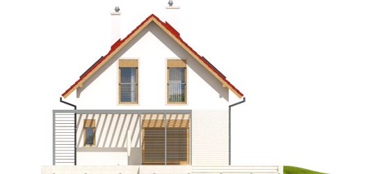 Graficzne opracowanie rzutów poglądowych widocznych na karcie projektu zostało wykonane przez Extradom.pl. Prezentowane przez Extradom.pl wizualizacje wykonane zostały przez autora projektu i należy poczytywać je jedynie za przykład i propozycję wykończenia, wizję architektoniczną autora projektu. Ostateczne wykończenie budynku może nastąpić na wiele sposobów. Szczegółowe rozwiązania zastosowane w oferowanej dokumentacji - w tym również ilość, lokalizacje i wygląd okien, drzwi, kominów - mogą w niewielkim stopniu różnić się od prezentowanej wizualizacji budynku.